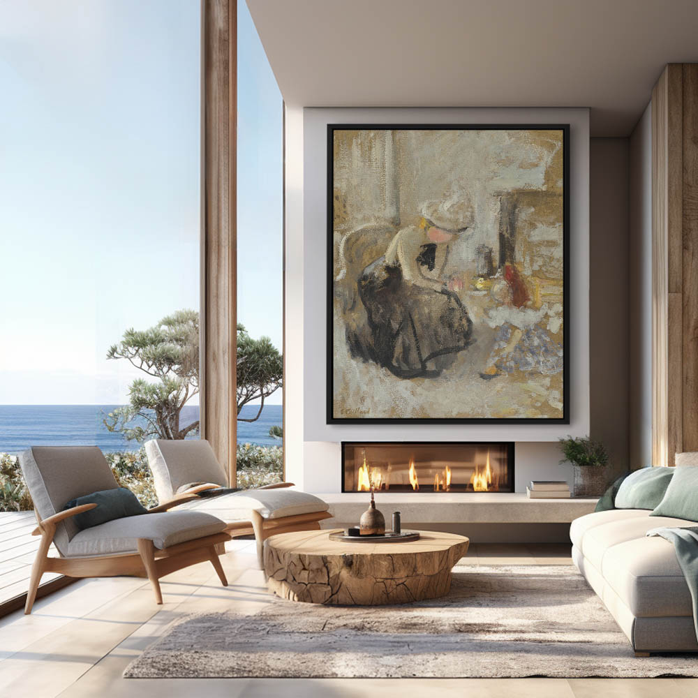 Abstract depiction of a woman and small girl having tea