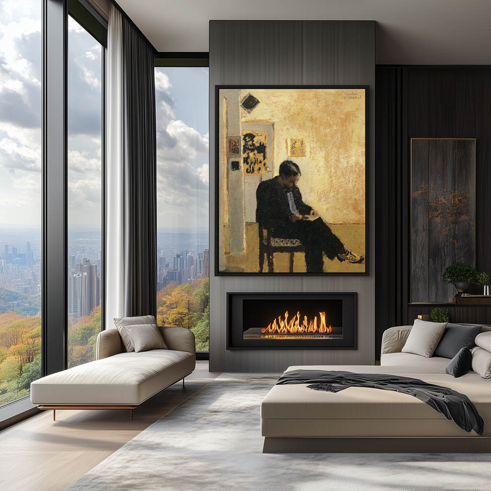 Man in black sitting and reading