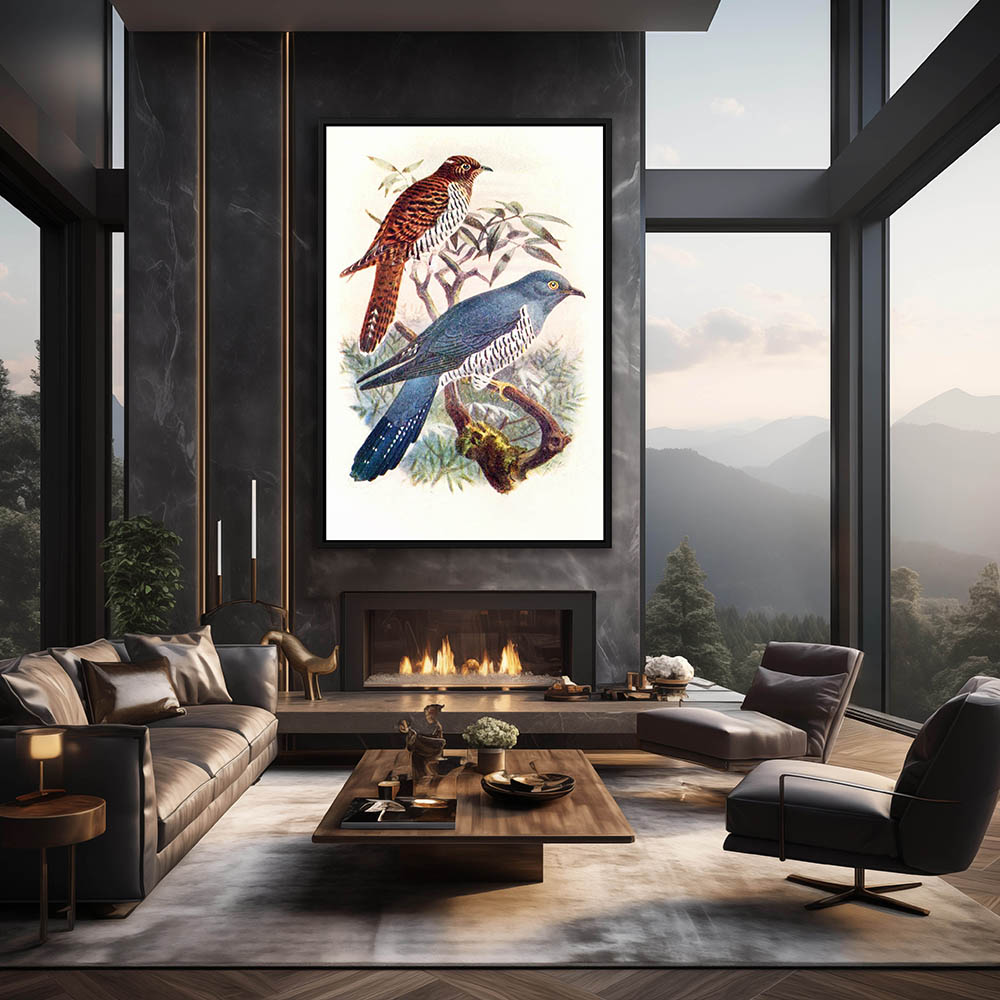 Painting of the Common Cuckoo Birds Perched on a Limb