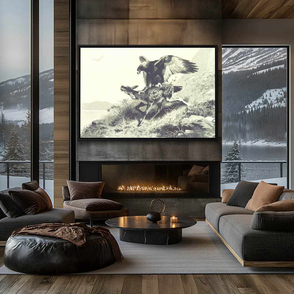 Drawing of an Eagle on a Fawn in Black and White