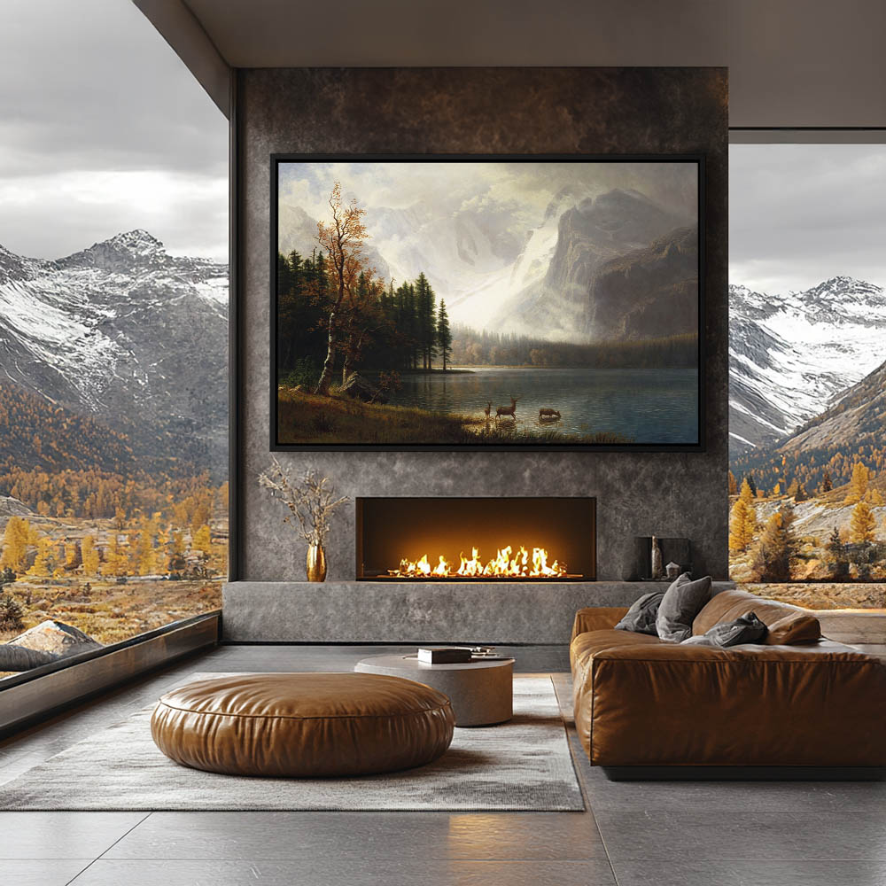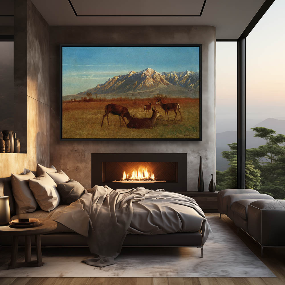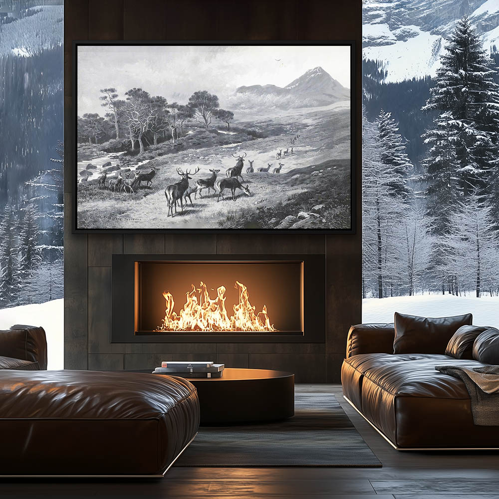 Mountain Landscape Painting with Deer