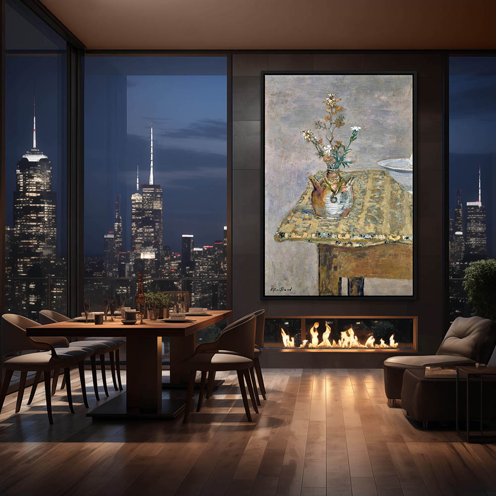 Still life of flowers in a two handled pot