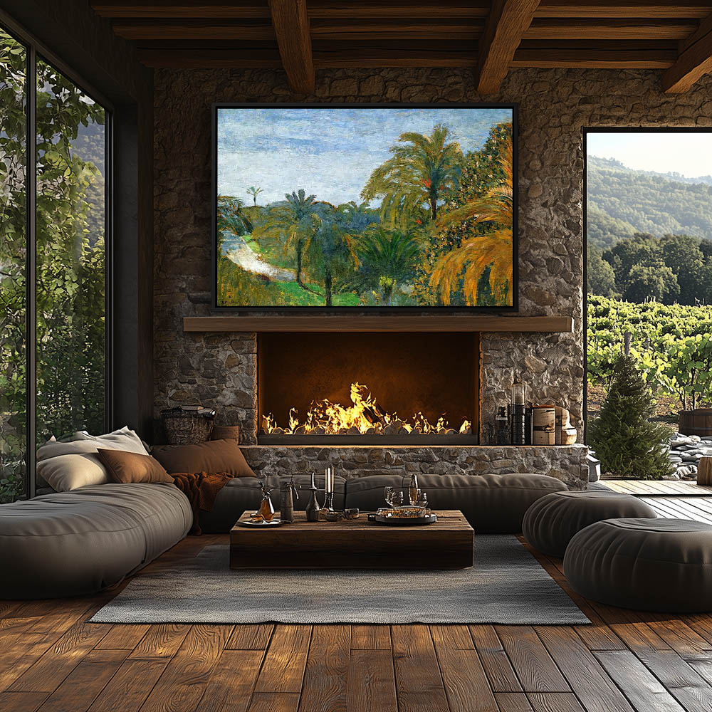 Abstract landscape with palm trees and a road