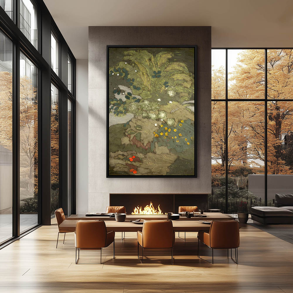 Abstract landscape with flowering plants