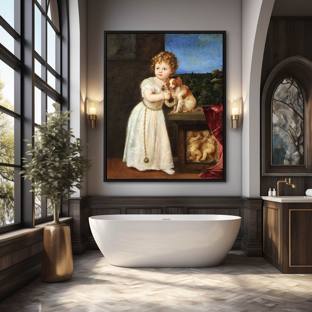 Vintage Figurative Portrait Painting with a Dog