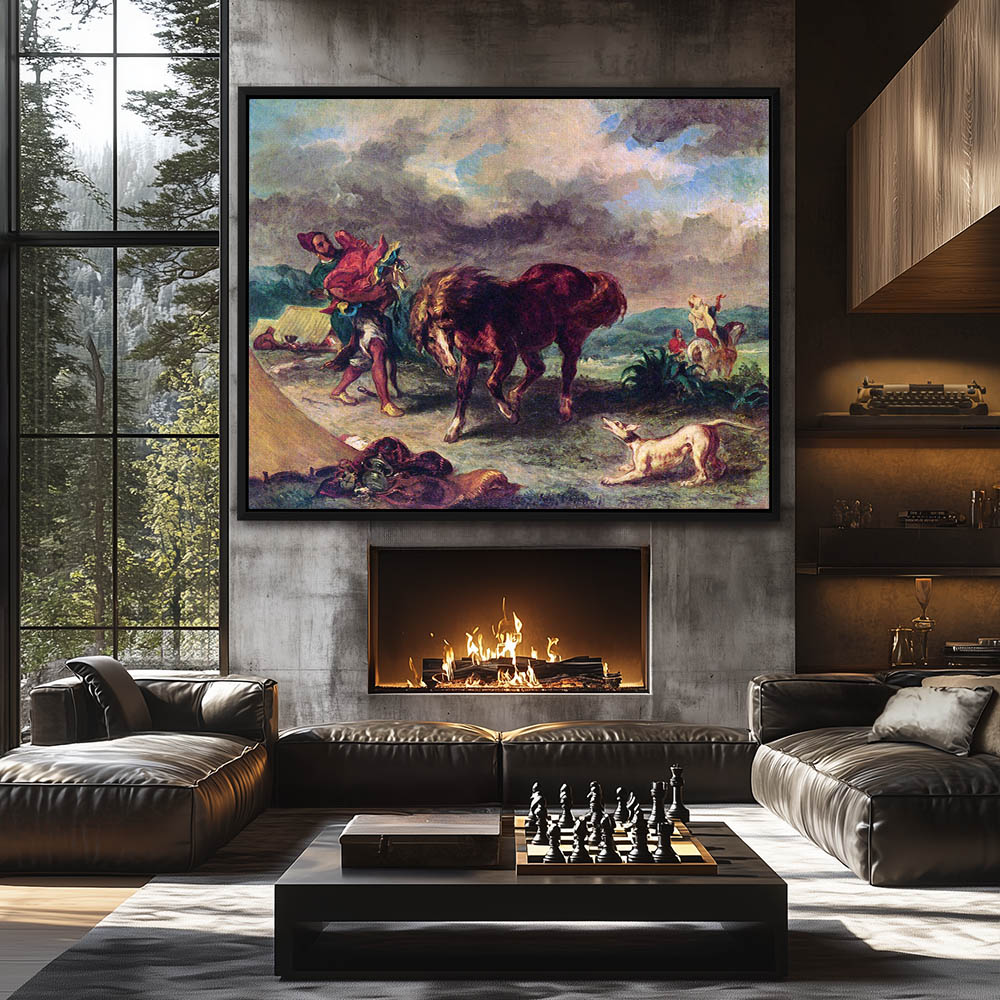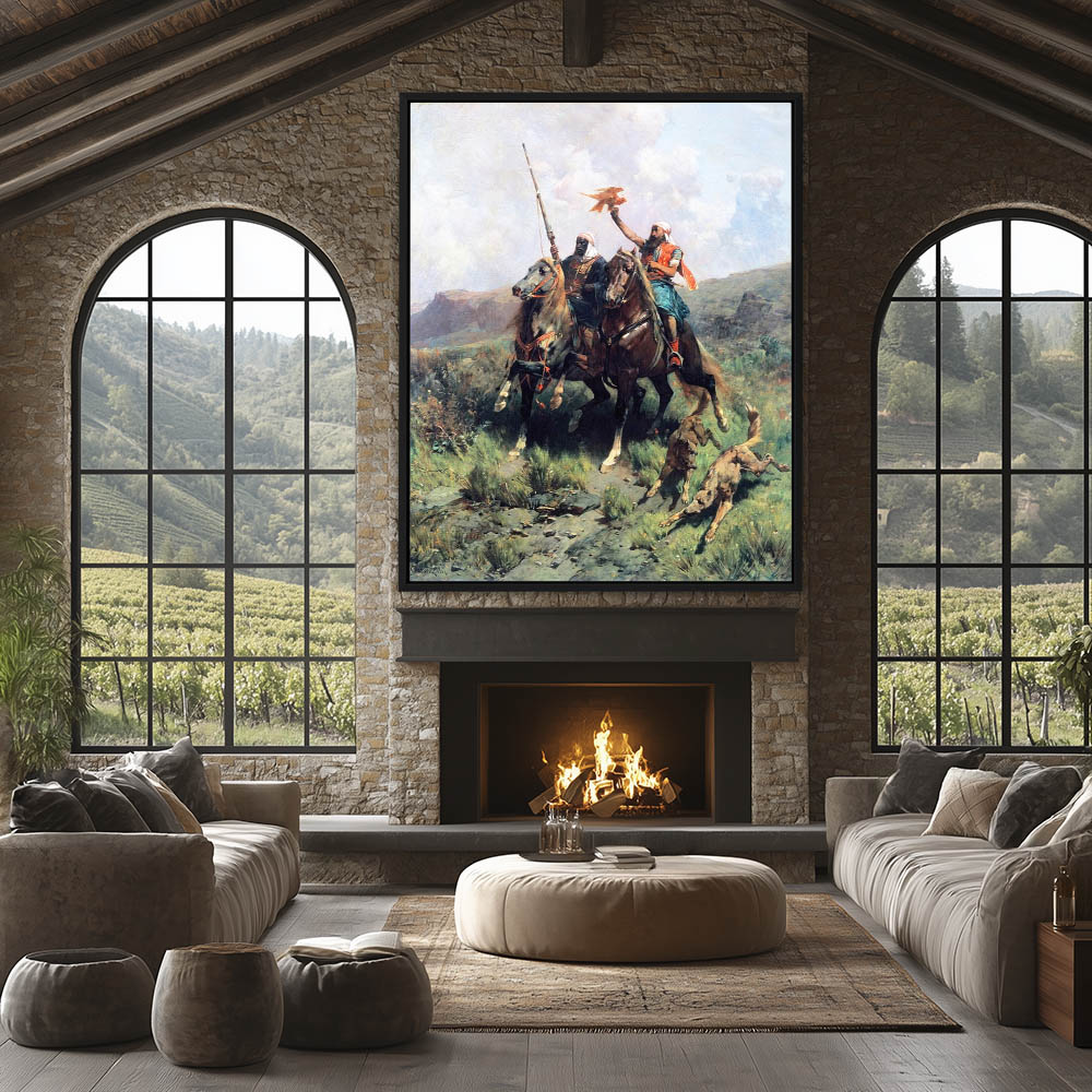 Landscape Panting with Arabs on Horseback with Dogs and a Falcon