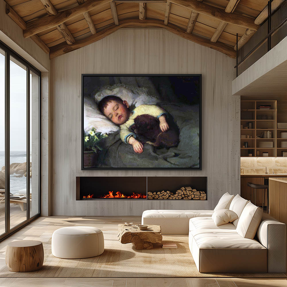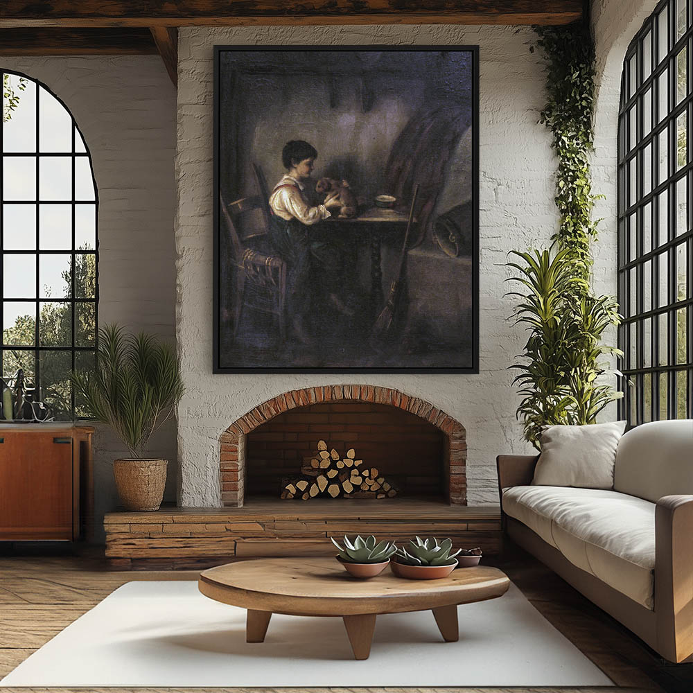 Vintage Painting of a Boy with a Puppy