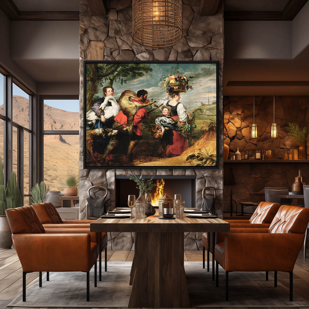 Vintage Figurative Painting of Farmer Headed to the Market