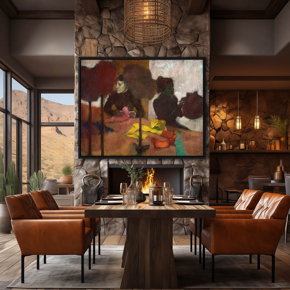 Two women making hats, one working and the other lost in thought
