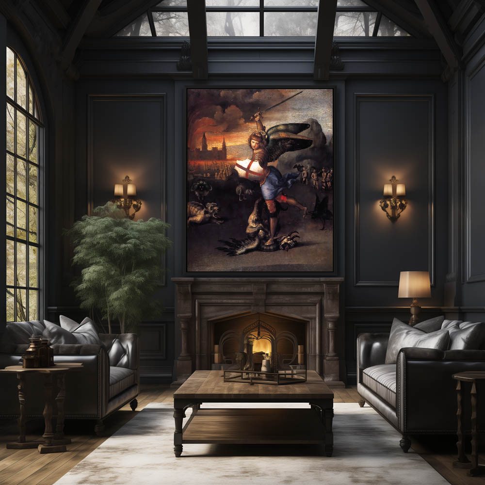 Vintage Painting of St Michael fighting a Mythical Dragon