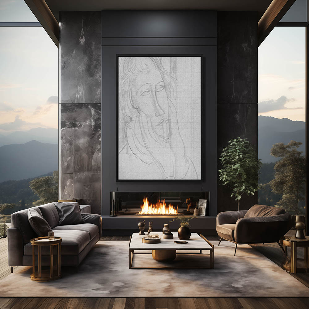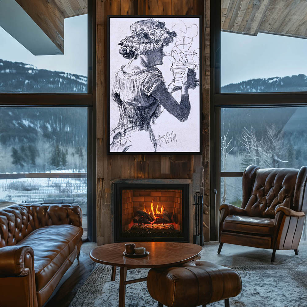 Abstract Figurative Drawing of a Woman Wearing a Hat