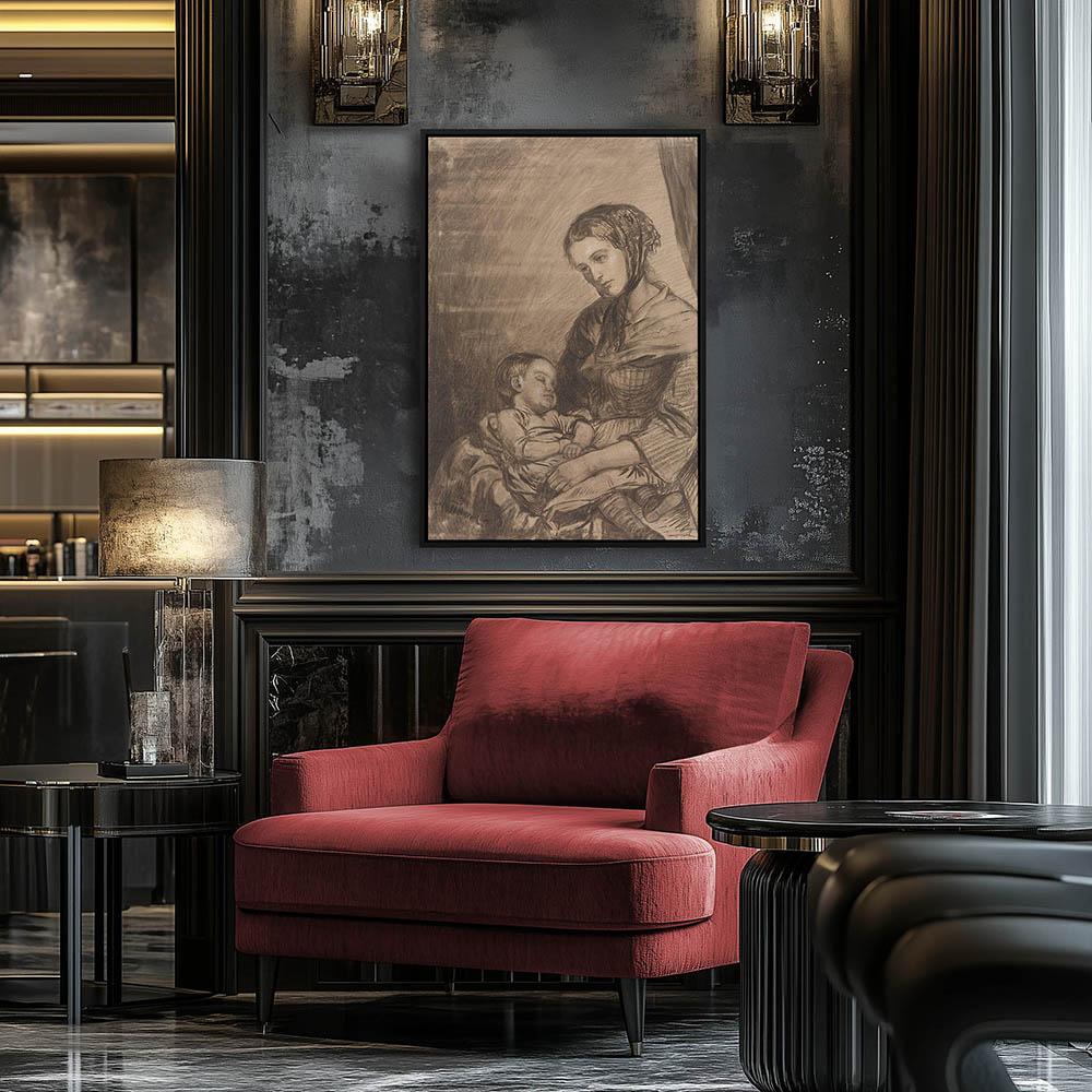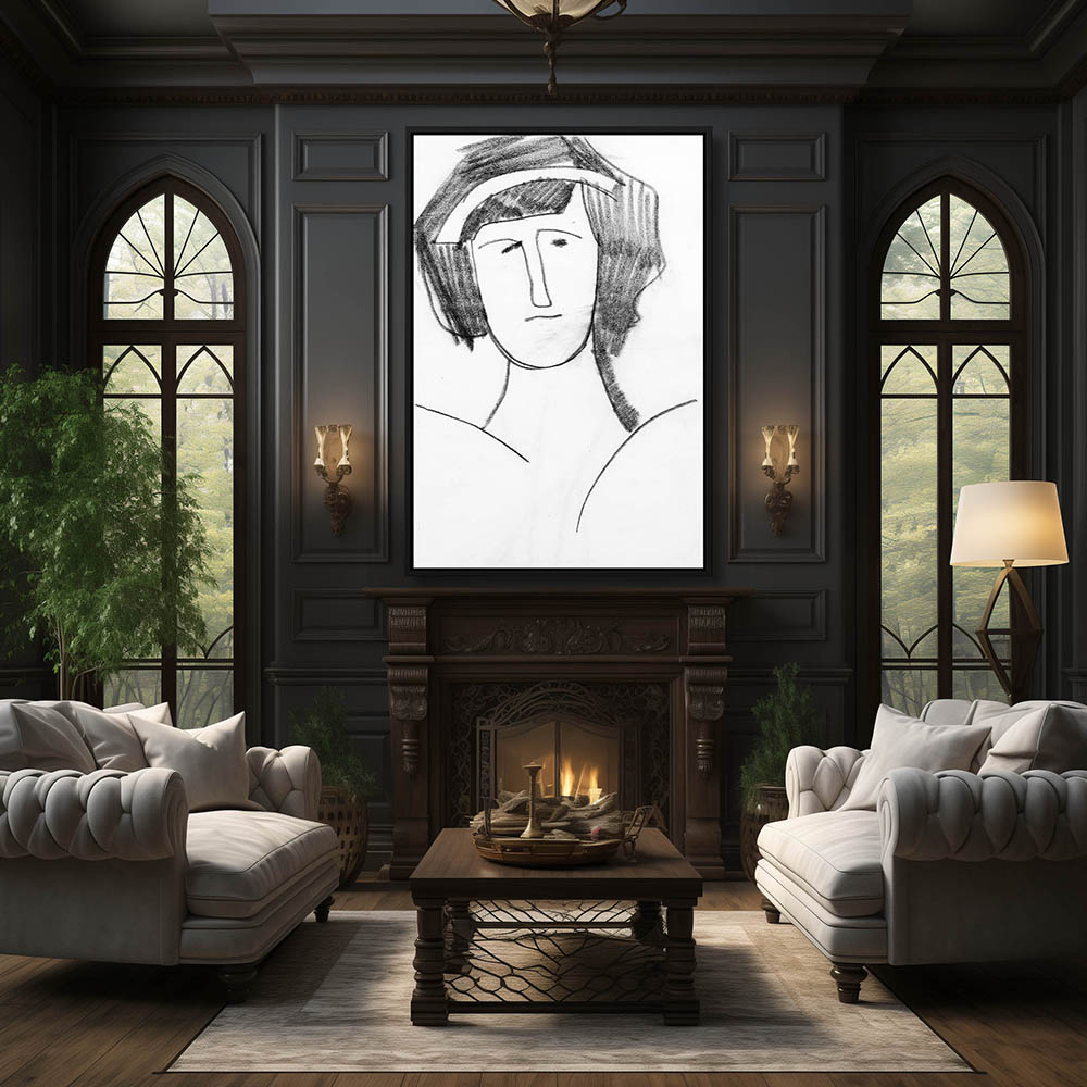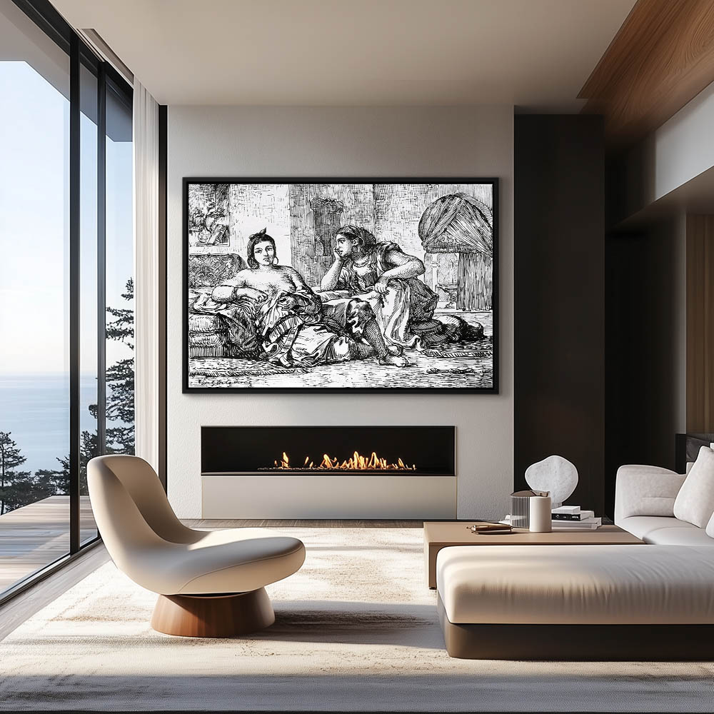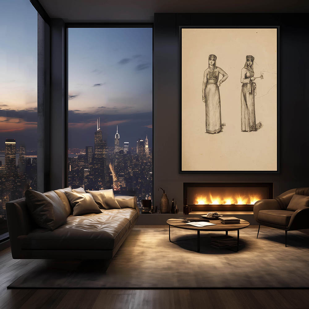 Vintage Figurative Drawing of Two Women and one Half Nude