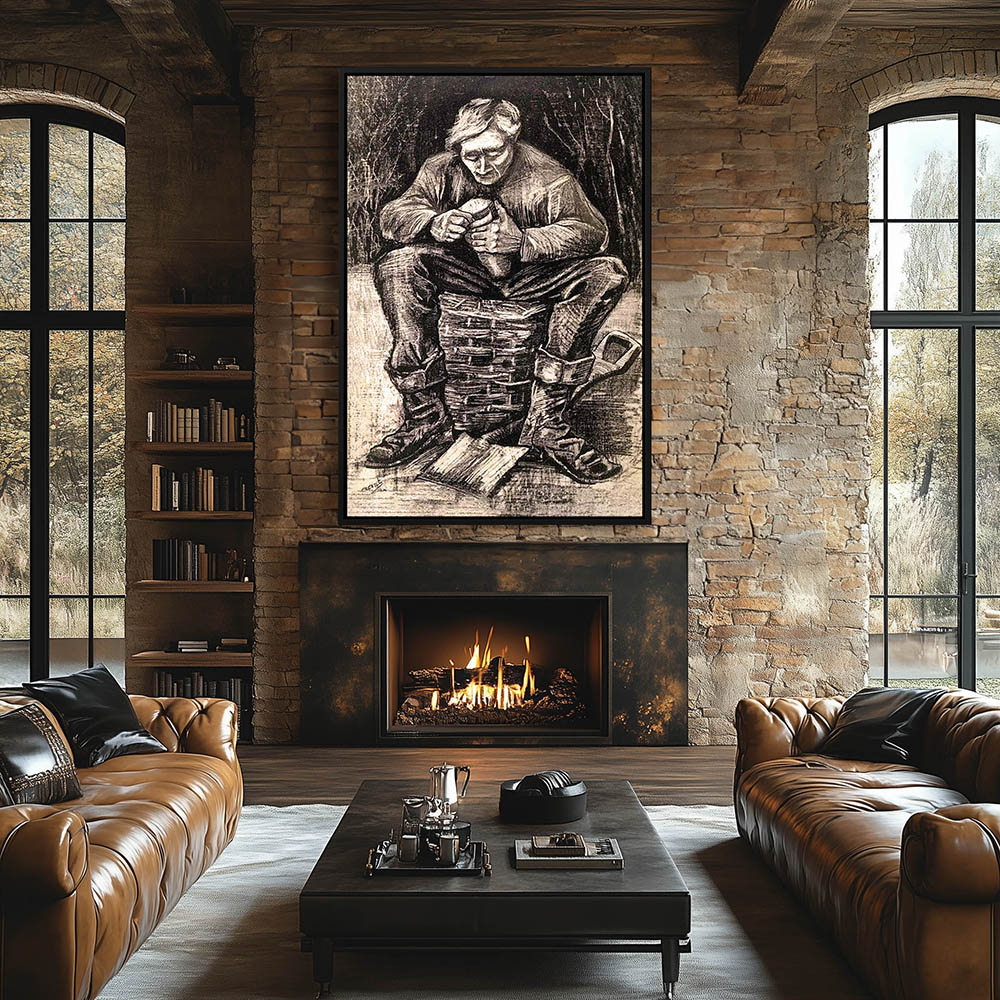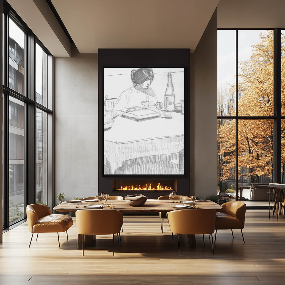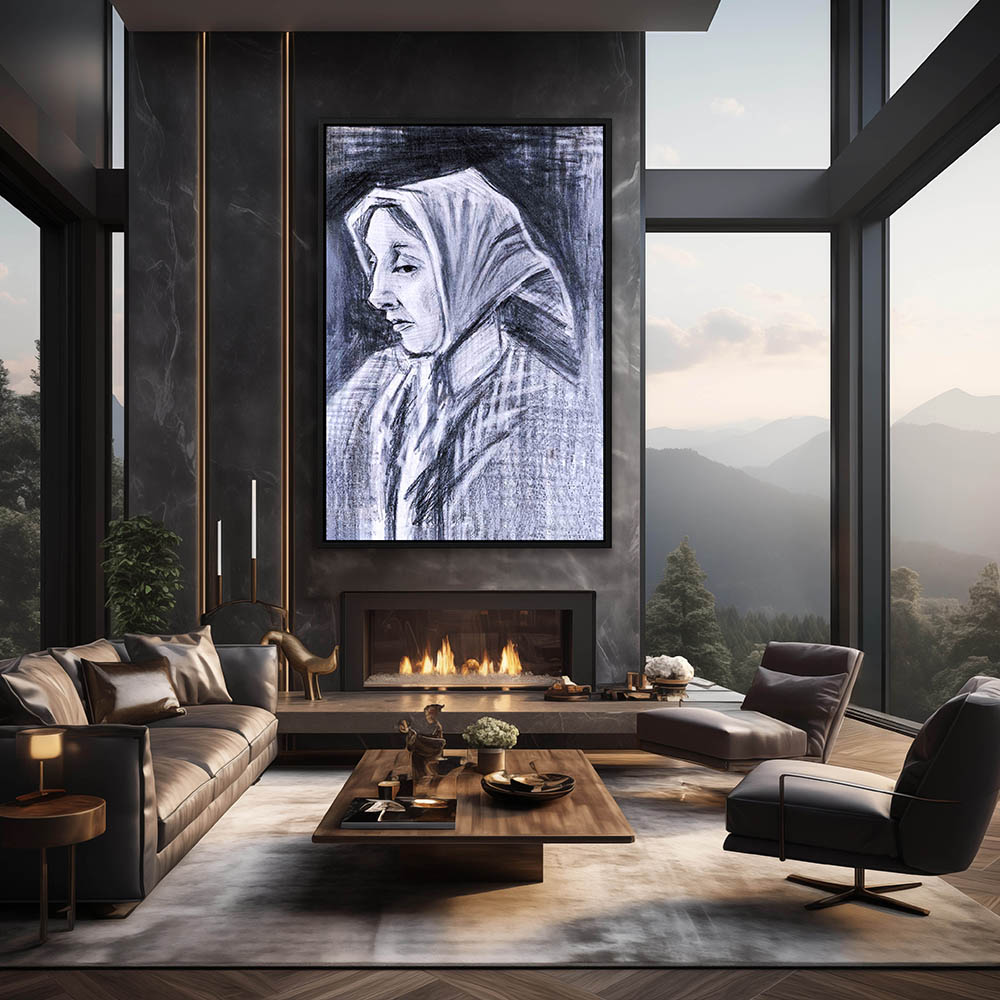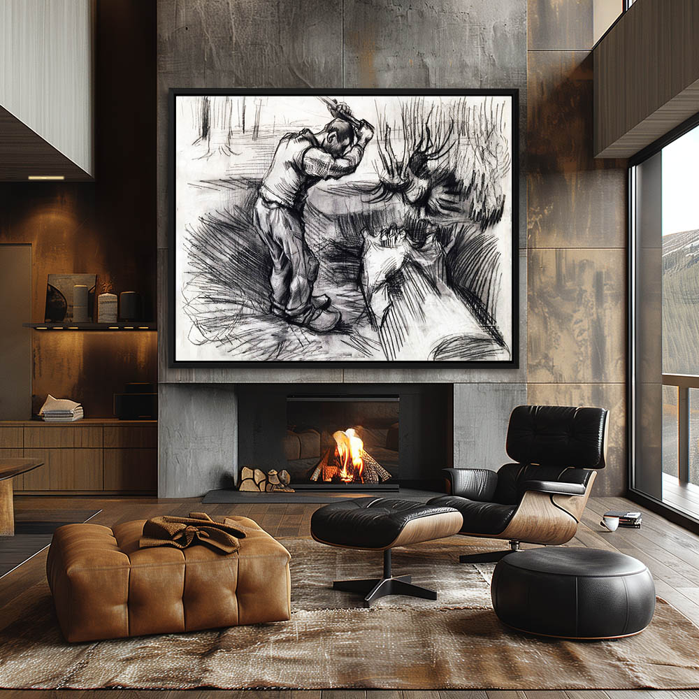 Vintage Figurative Drawing of Two Women and one Half Nude