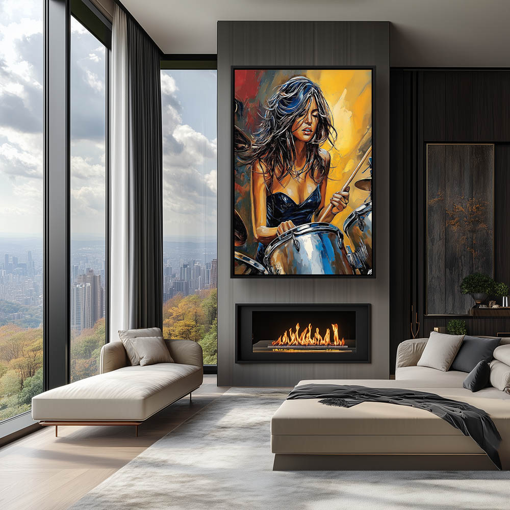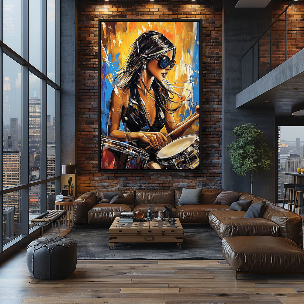 Abstract Painting of a Beautiful Woman Playing the Drums