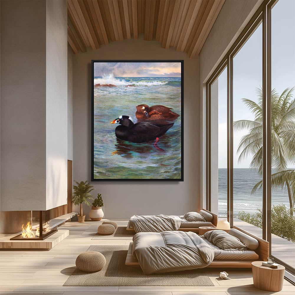 Seascape Painting with Surf Scoter Ducks in the Waves