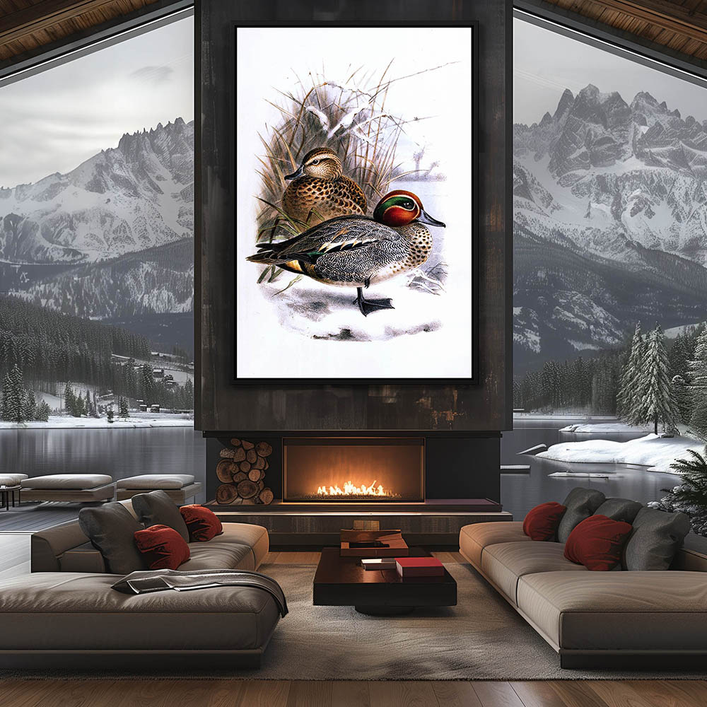 Painting of Teal Ducks on the Snow in Winter