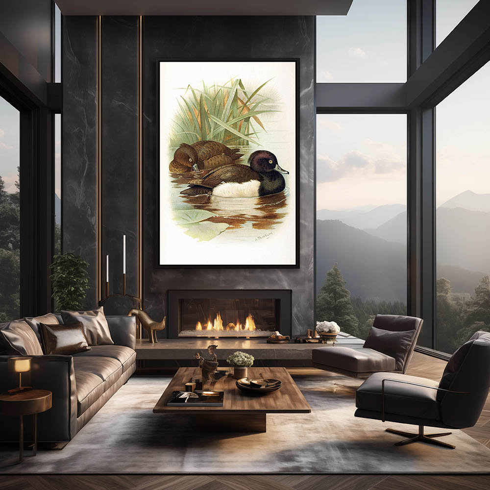 Painting of Tufted Ducks in the Water Next to the Reeds