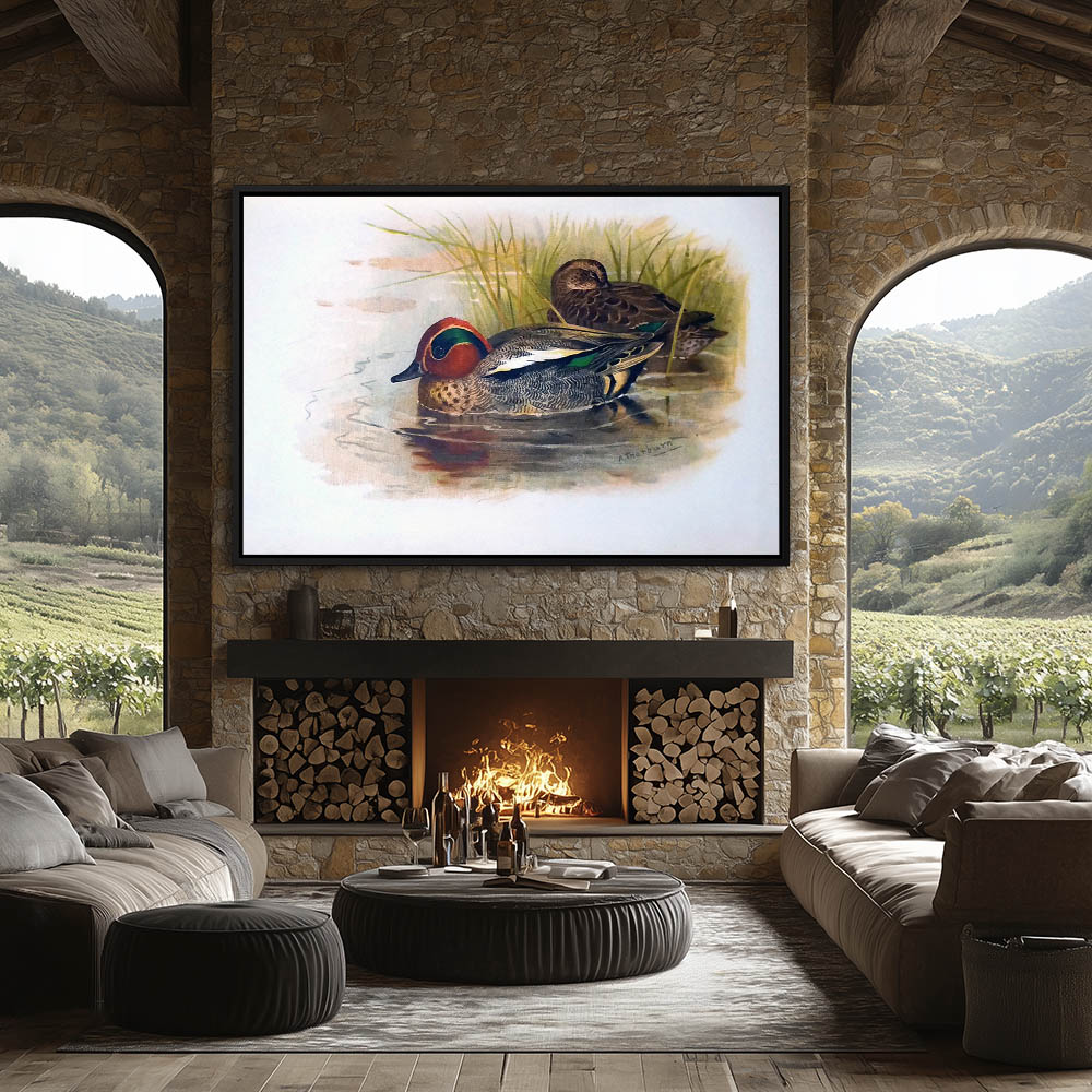 Painting of Teal Ducks in the Water Next to the Reeds