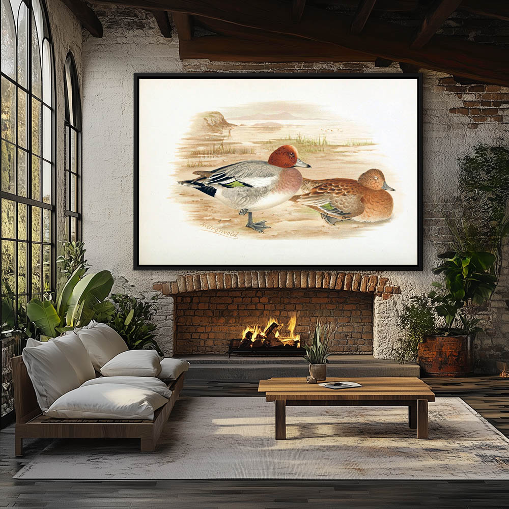 Painting of Wigeon Ducks on Shore at Low Tide