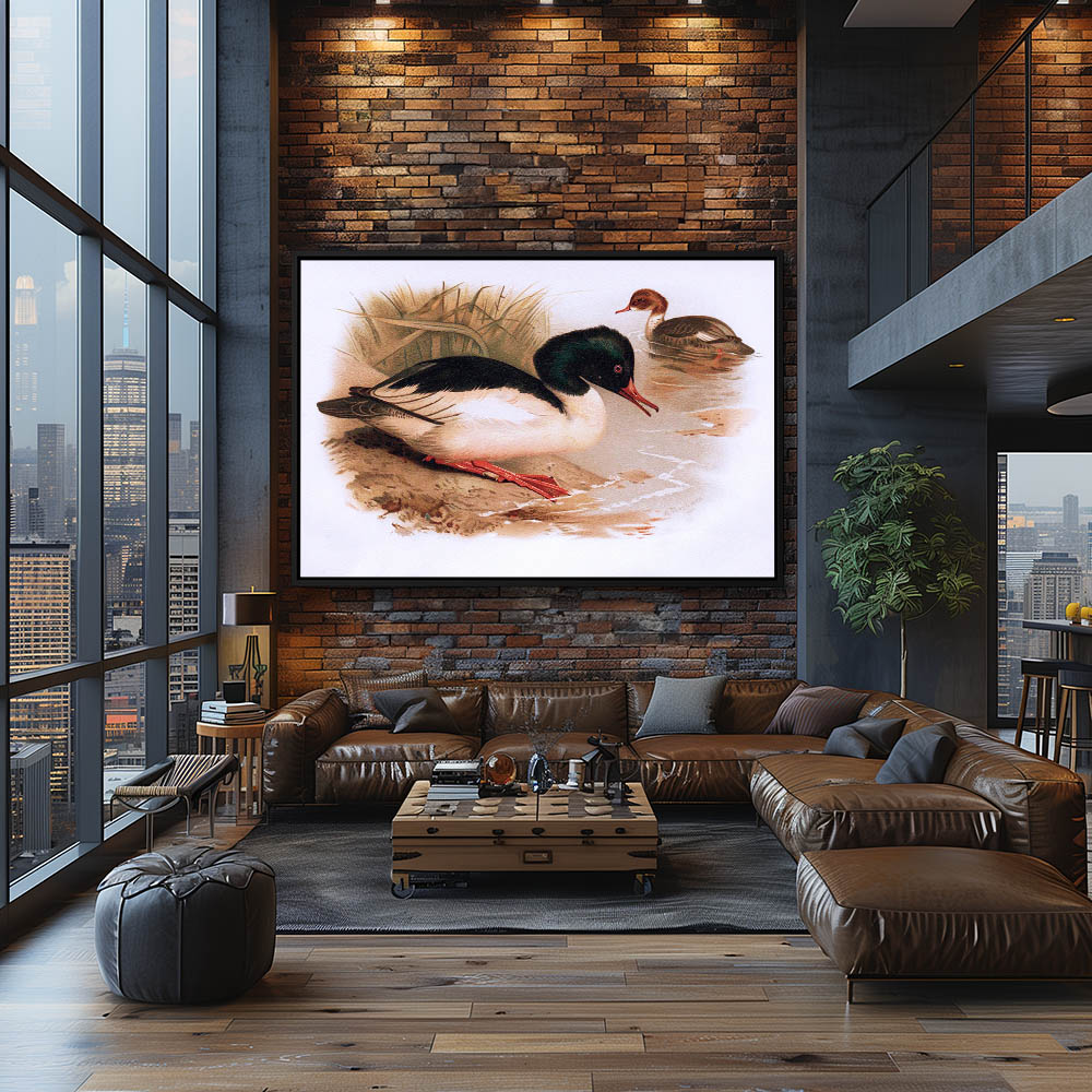 Painting of Goosander Ducks in the Snow