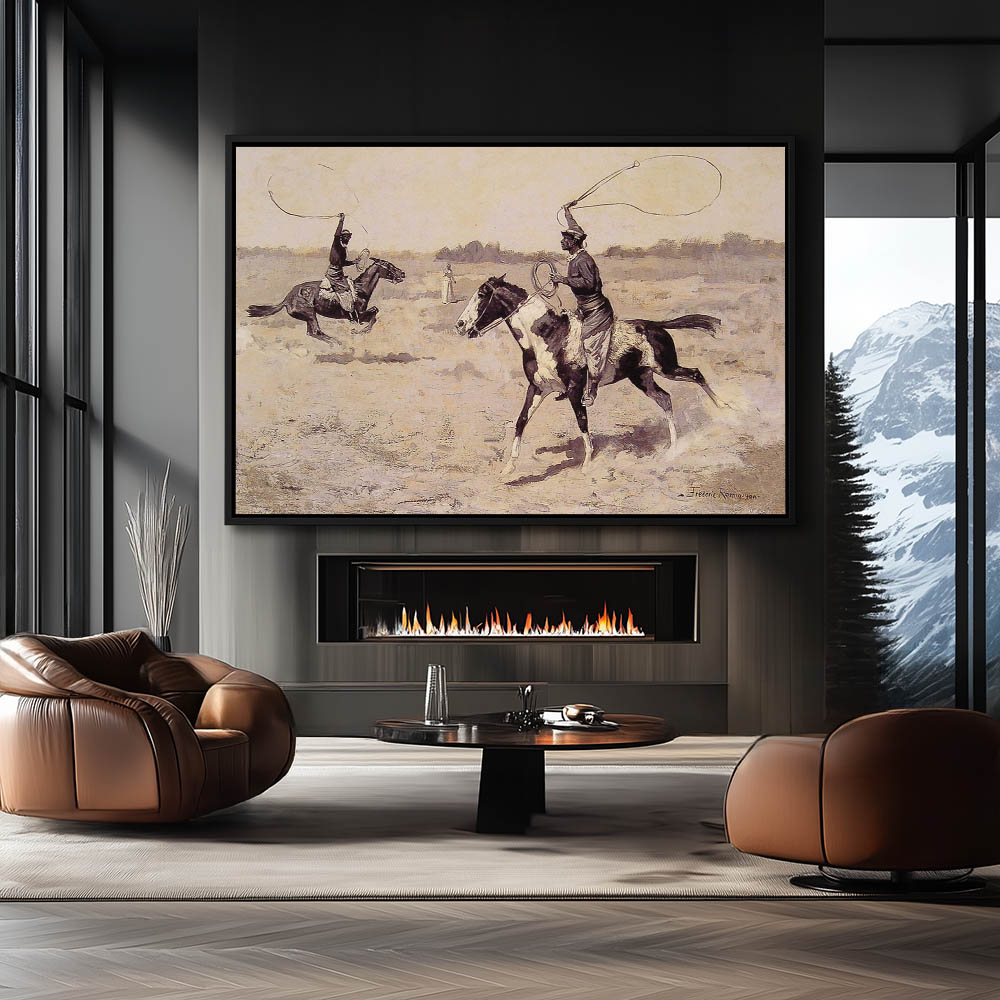 Two men on horseback, in a roping duel