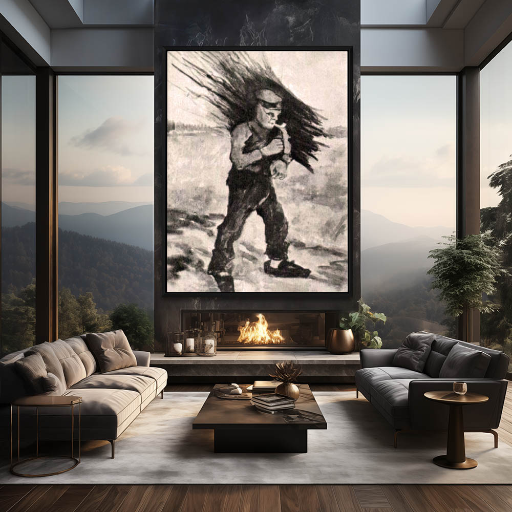 Impressionist Figurative Painting of a Man Carring Wood on His Back
