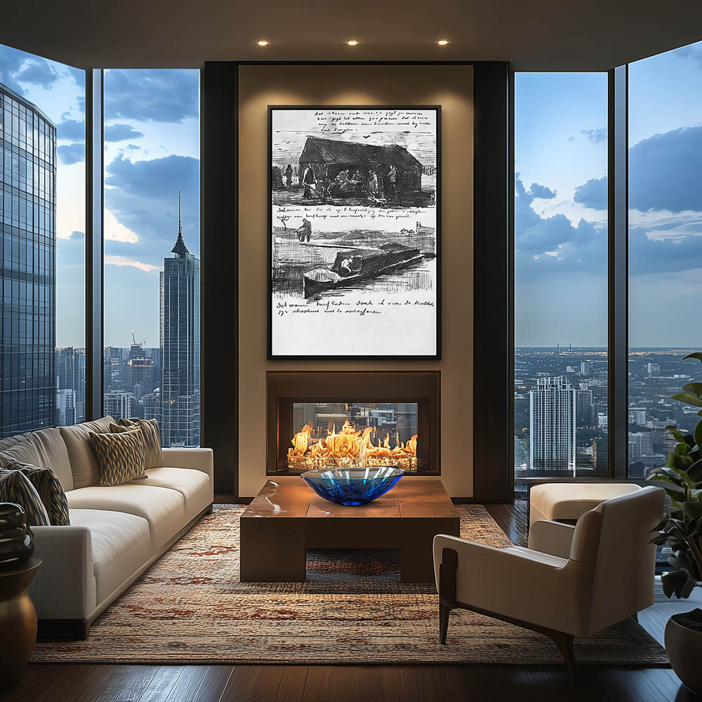 Drawing of a Man Sitting in a Chair with His Head in His Hands