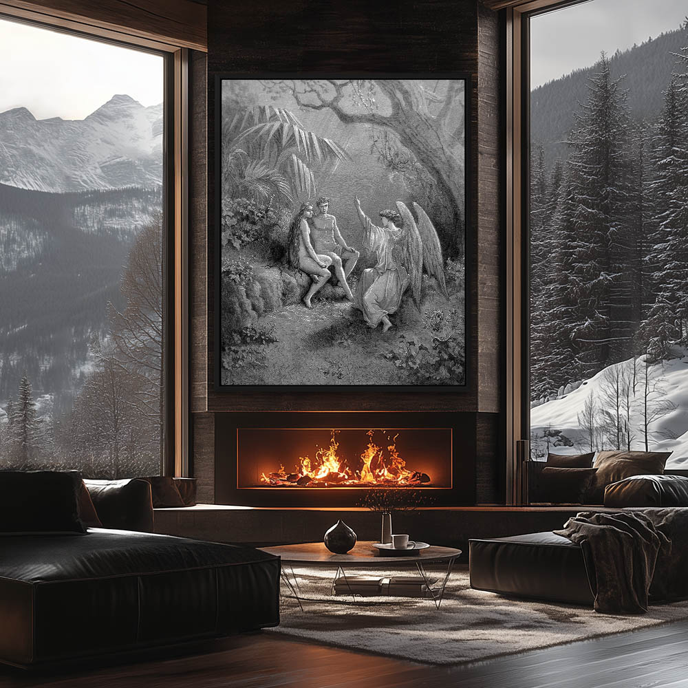 Vintage Etching of Eve and the serpent from Paradise Lost