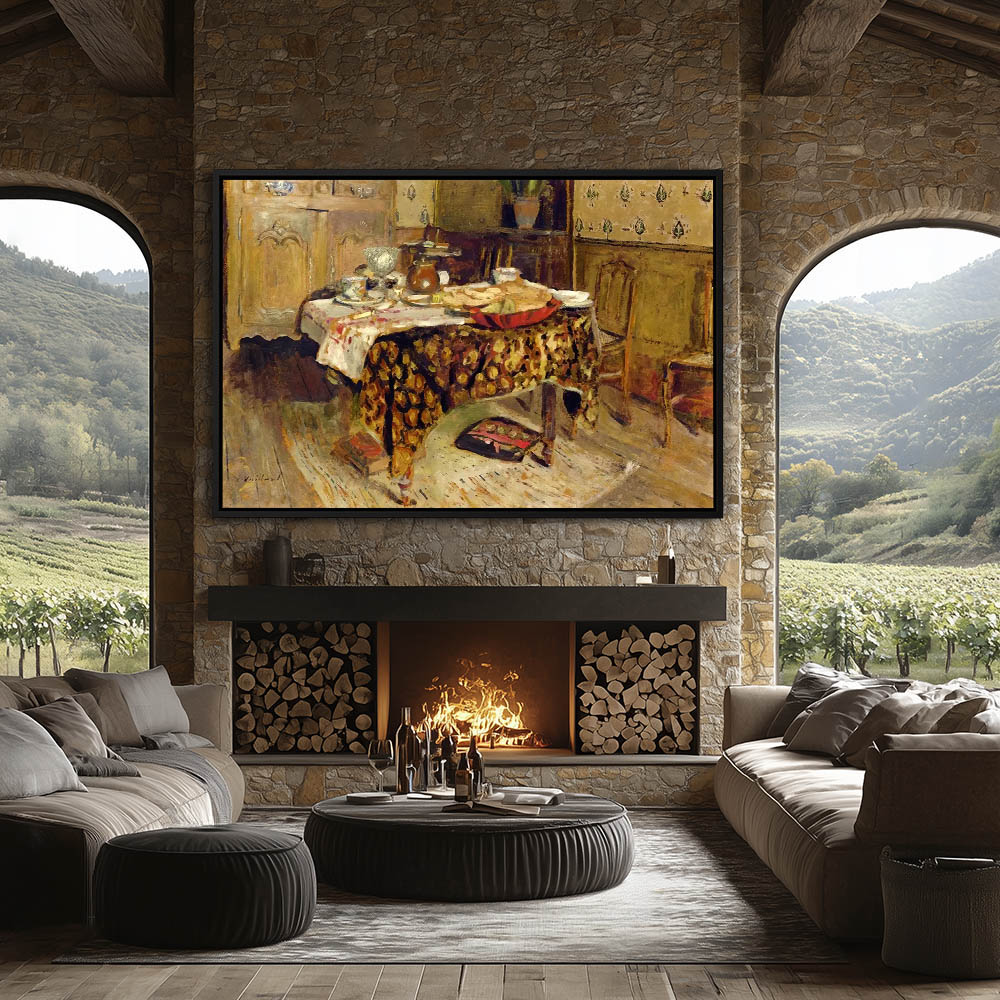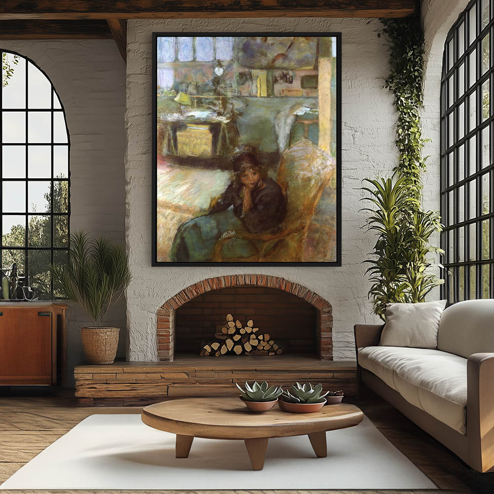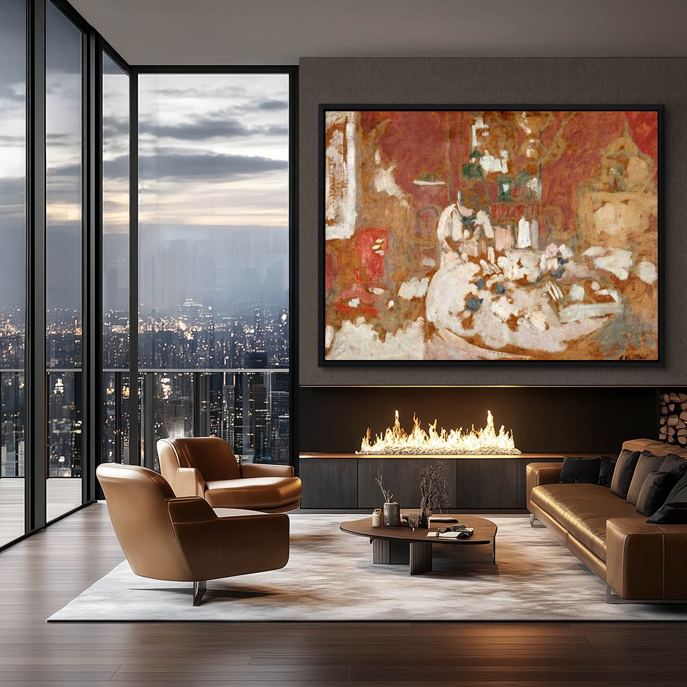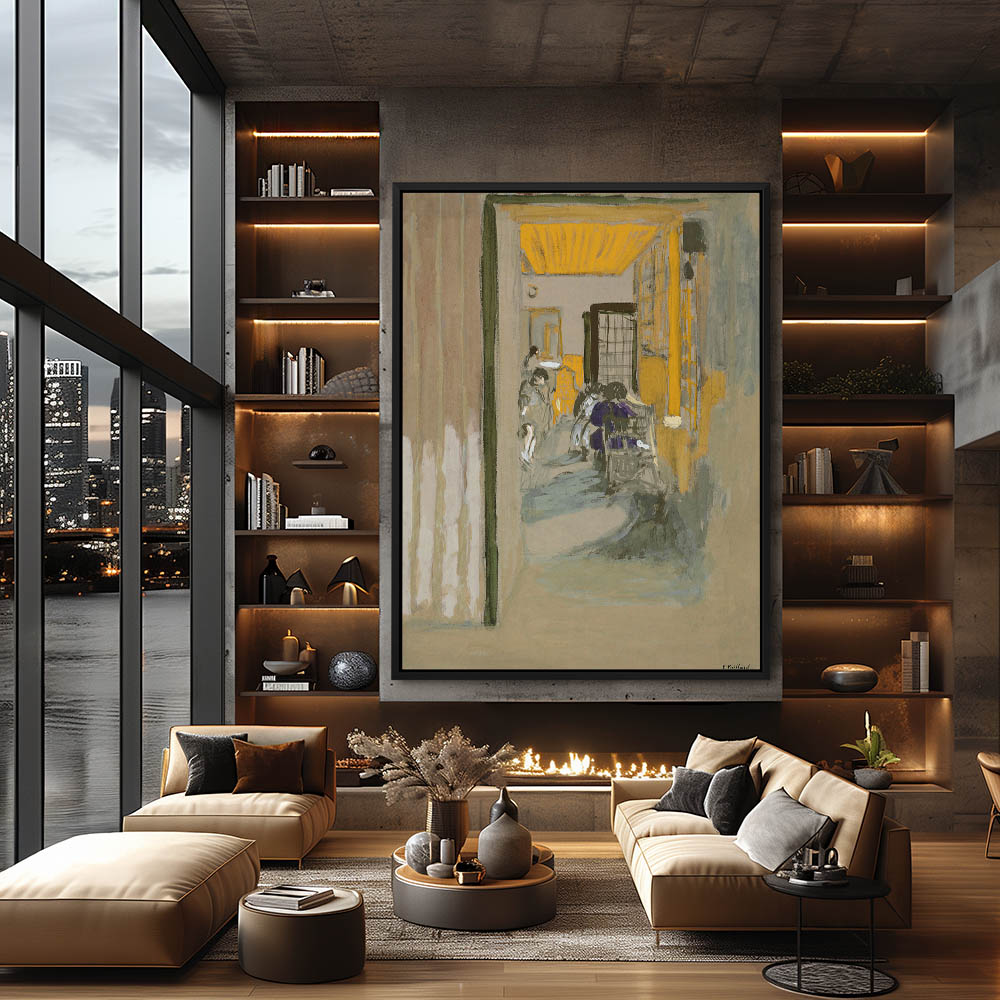 From $29.97Abstract cityscape with people sitting on benches in front of a house