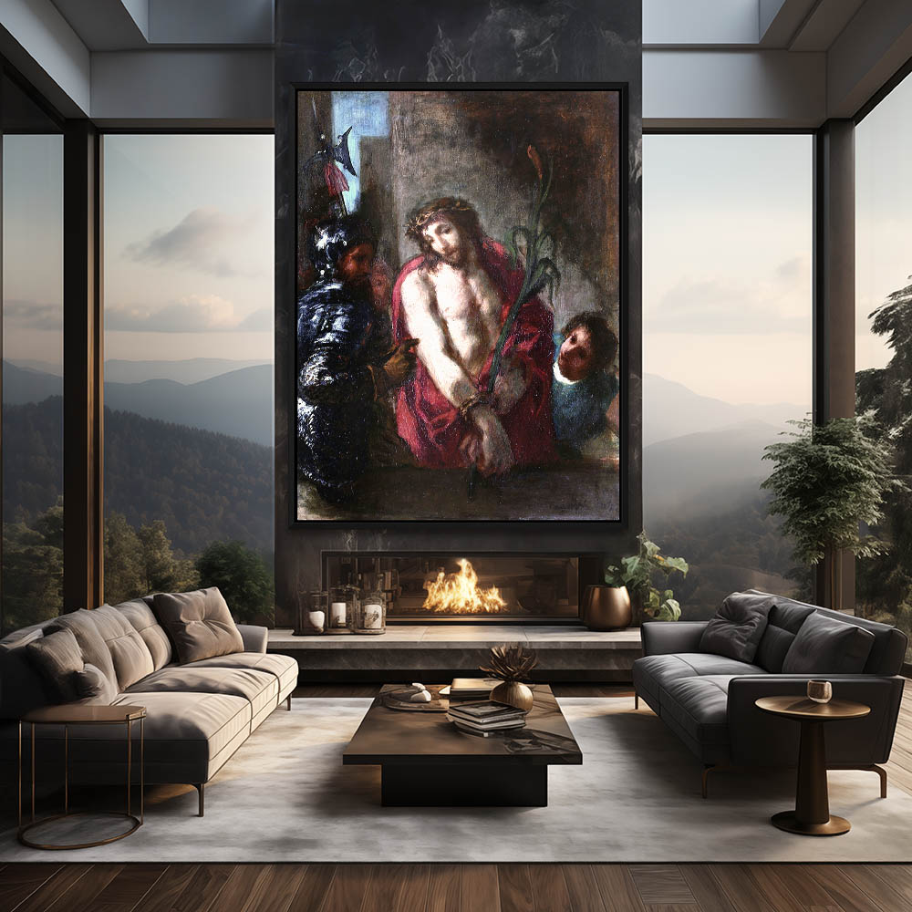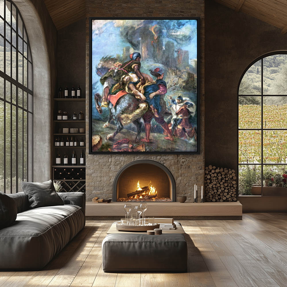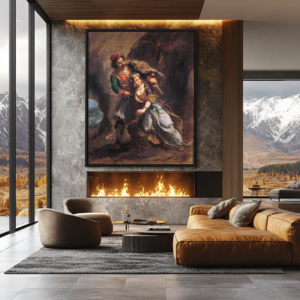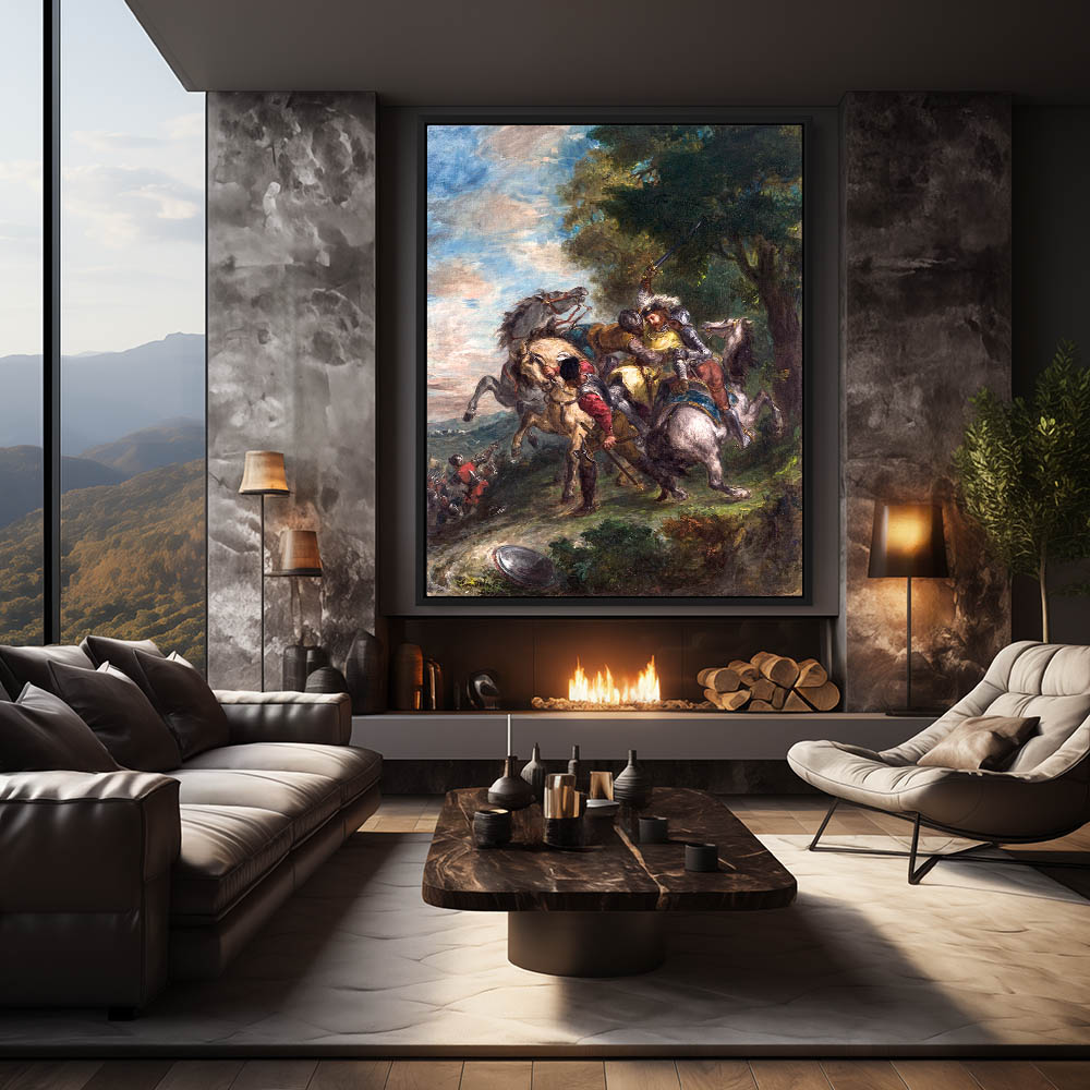 Vintage Figurative Landscape Painting of a Turk Surrendering to a Greek Horseman