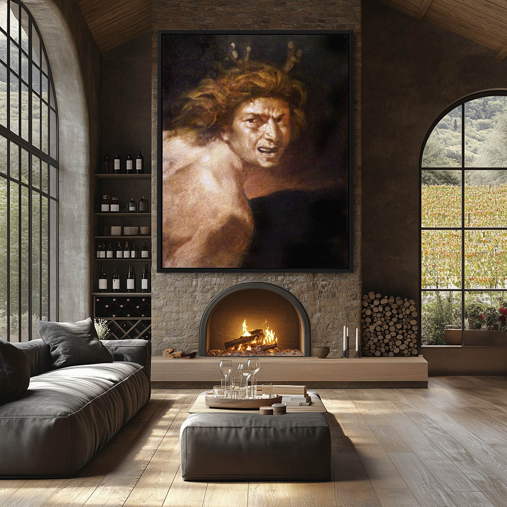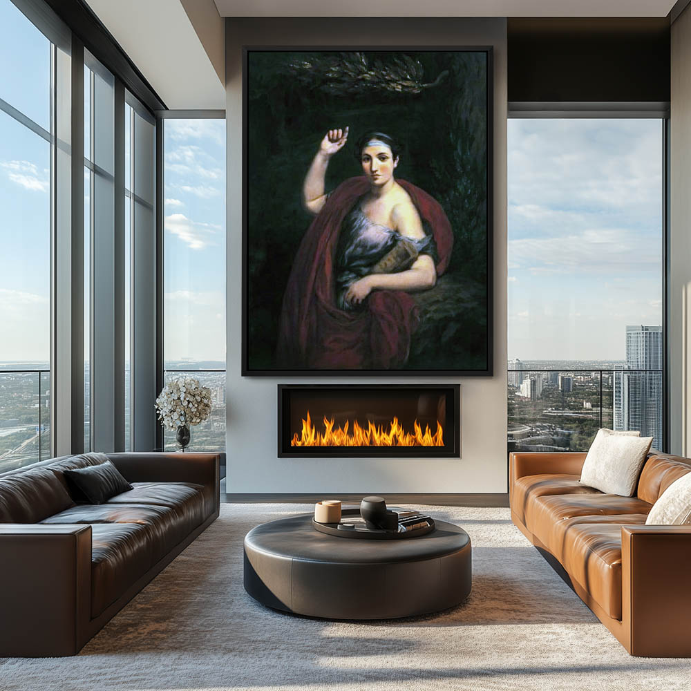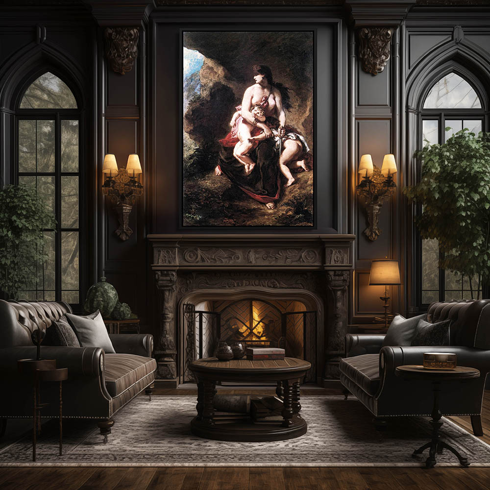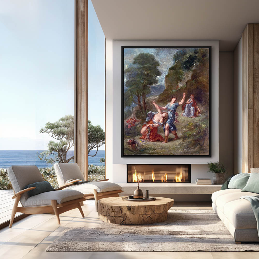 Vintage Figurative Landscape Painting of the Nude Eurydice bitten by a Snake while Picking Flowers
