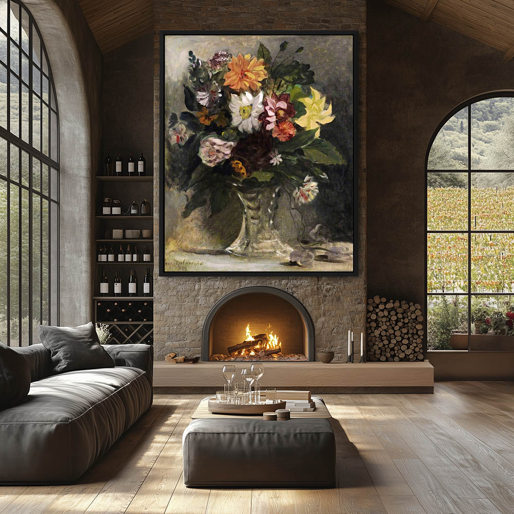 Vintage Still Life Painting with Flowers in a Glass Vase