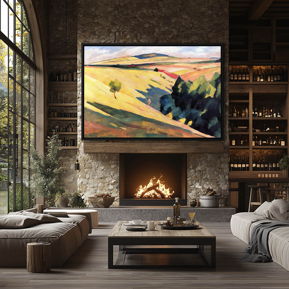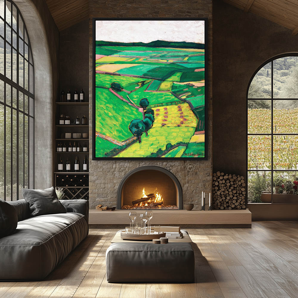 Abstract Landscape Painting with Checkered Farm Land