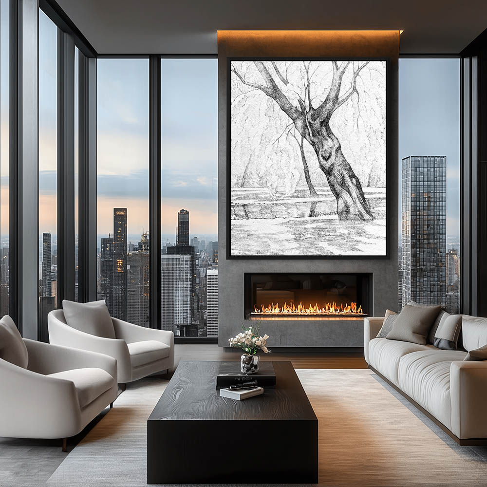 Landscape Drawing with a Tree