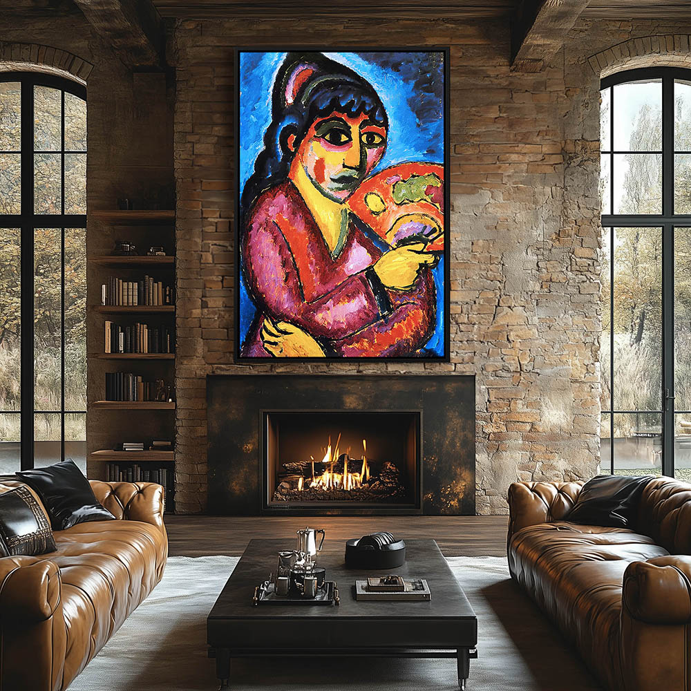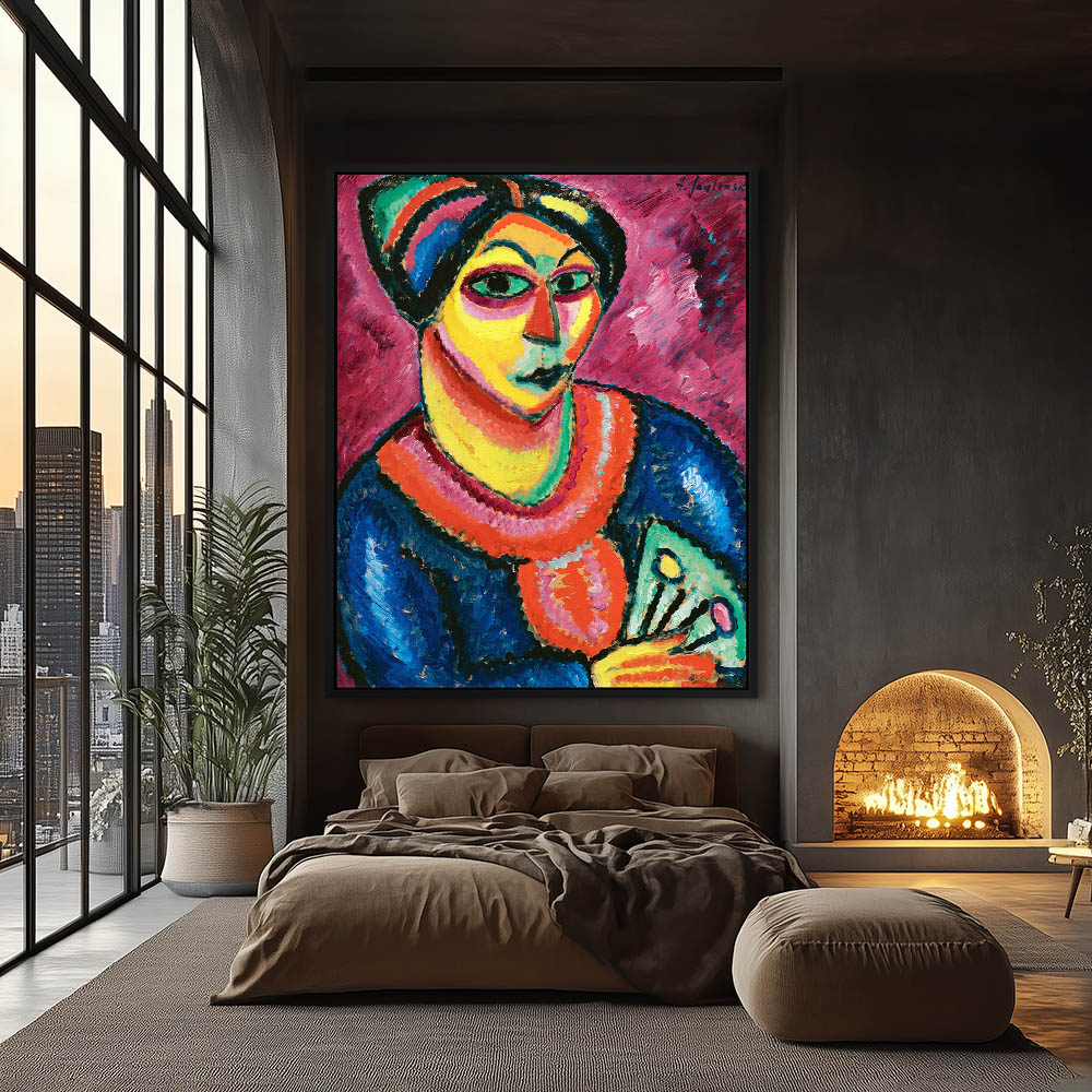 Abstract Portrait Painting of a Woman from Turkestan with a Fan