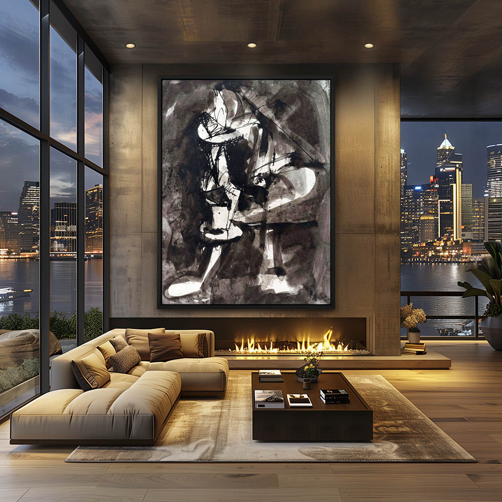 Abstract Landscape Painting with a Church Steeple on the Hill