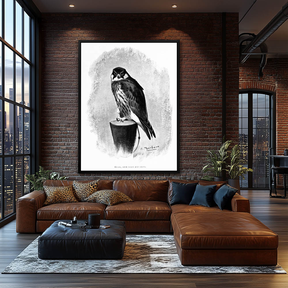 Painting of a Falcon in Black and White