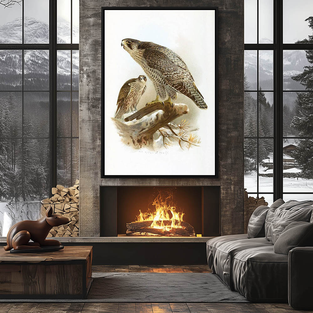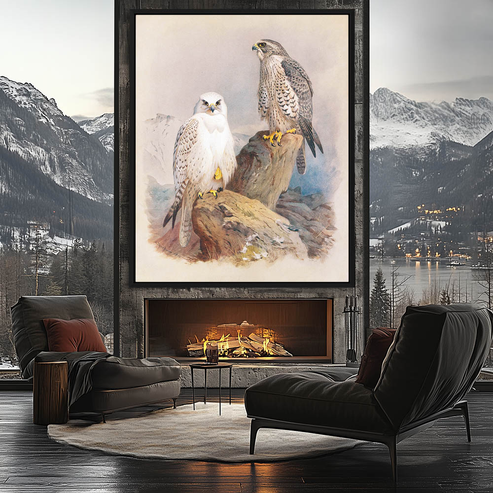 Painting of Two Greenland Falcons Perched on a Rock