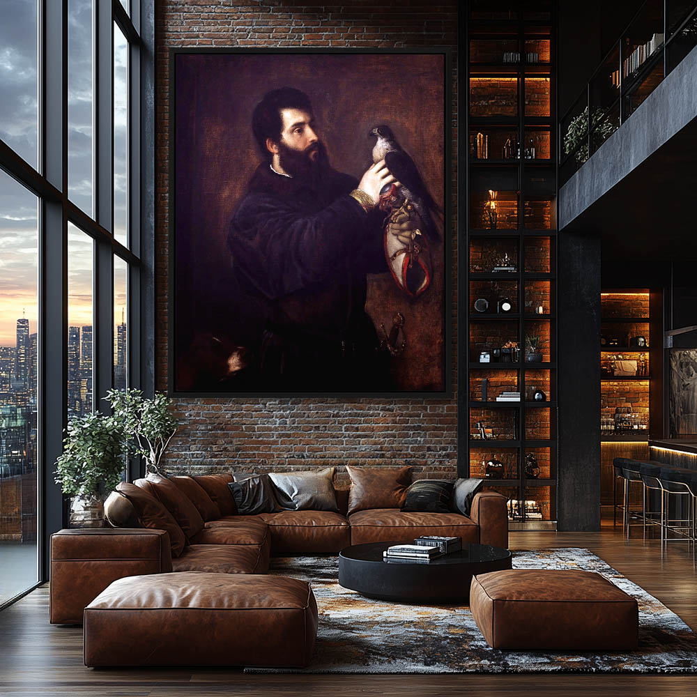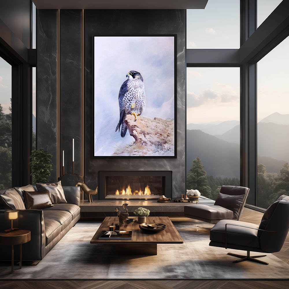 Painting of a Falcon Resting on a Rock