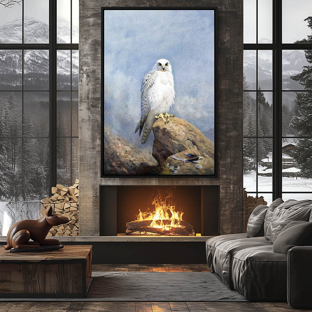 Painting of a Gyr FalconBird of Prey Resting on a Rock
