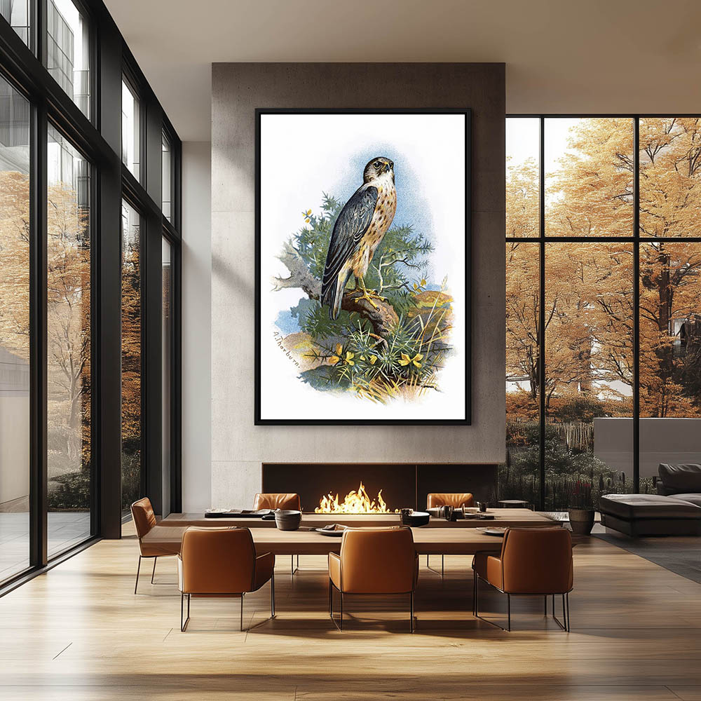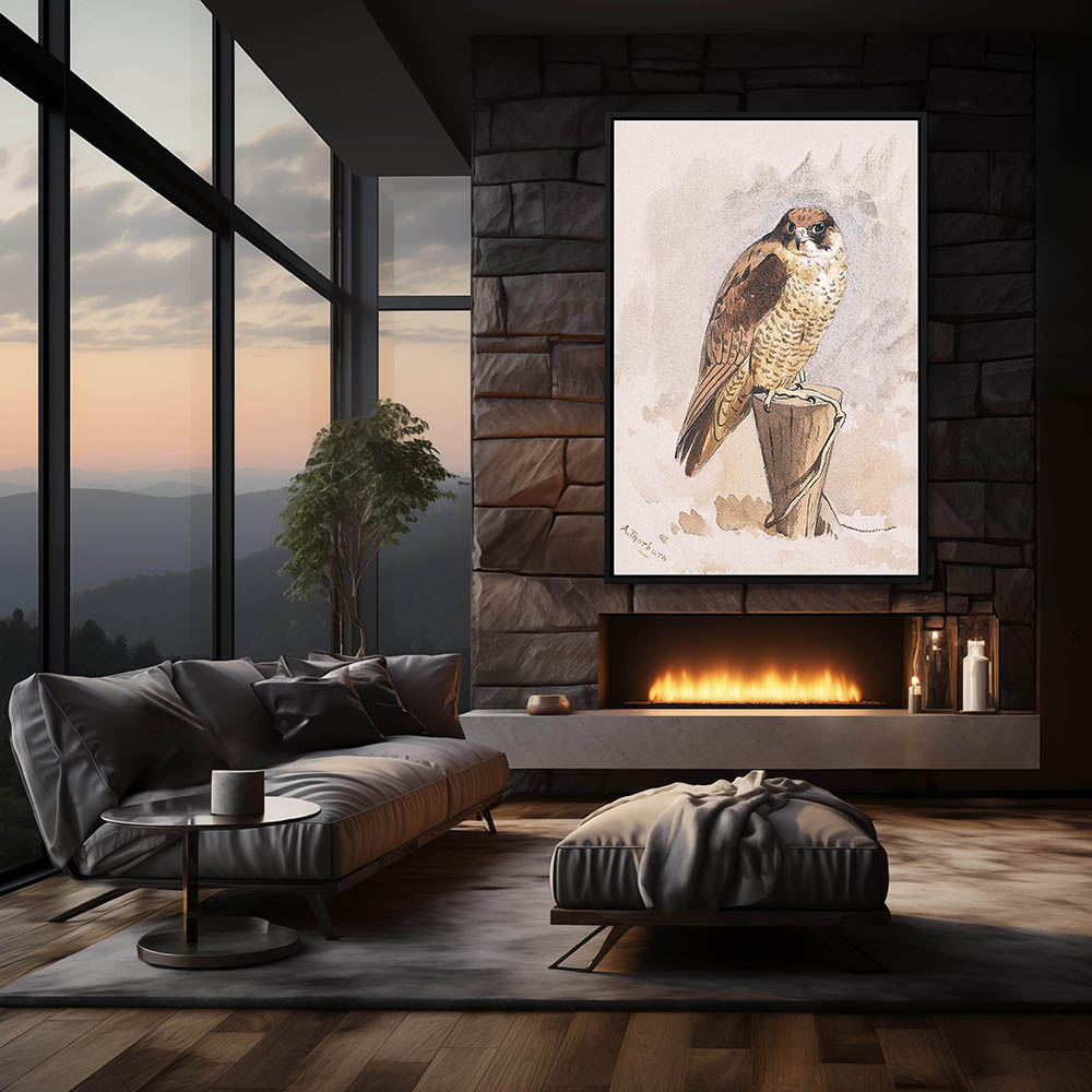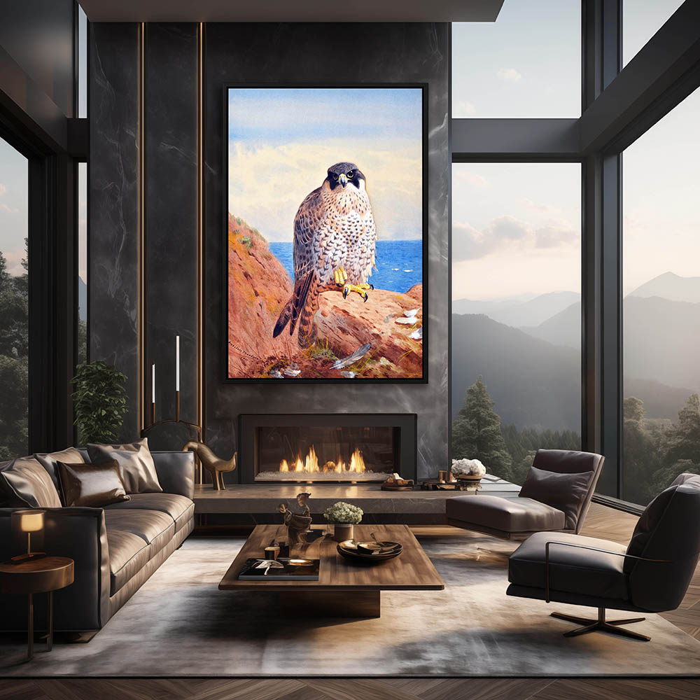 Painting of a Falcon Resting on the Cliffs Overlooking the Sea