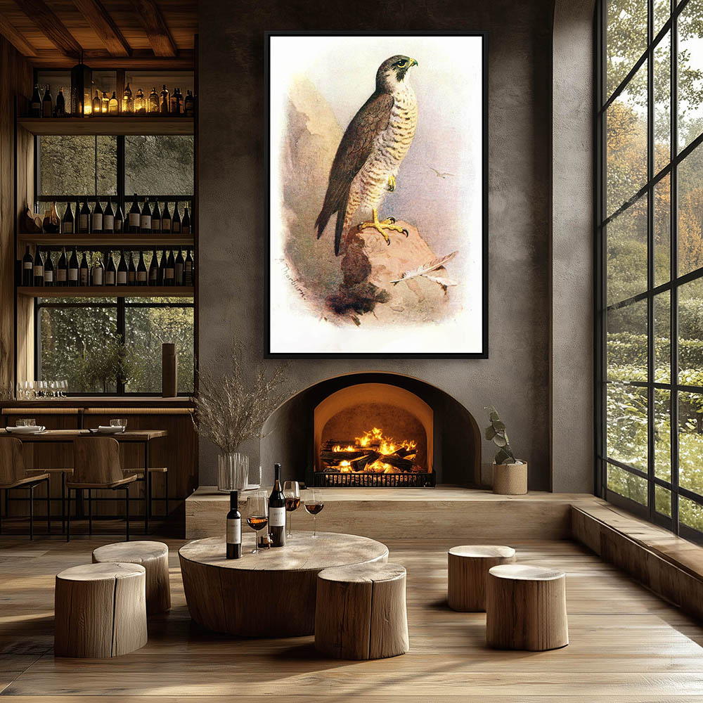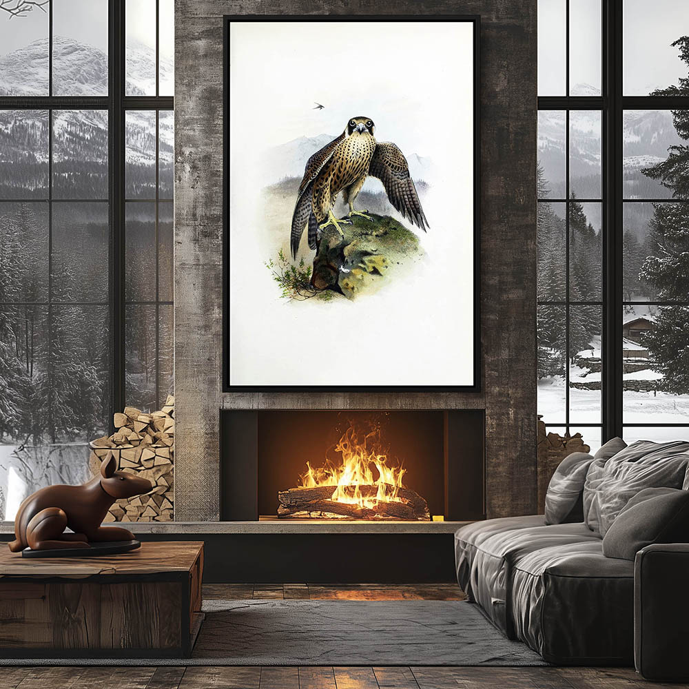 Painting of a Peregrine Falcon Resting on a Rock