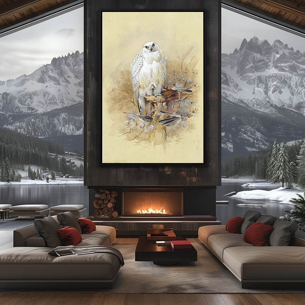 a Painting of a White Falcon Sitting on a Tree