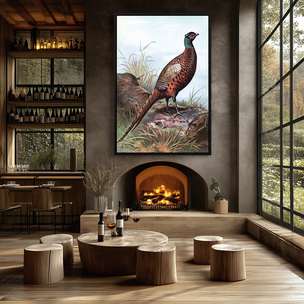 Painting of a Ring Necked Pheasant Standing on a Log