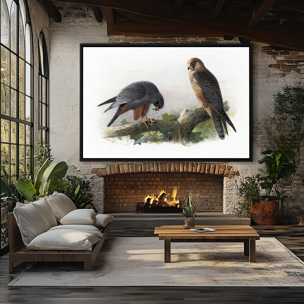 Painting of Red Footed Falcon Birds of Prey on a Limb