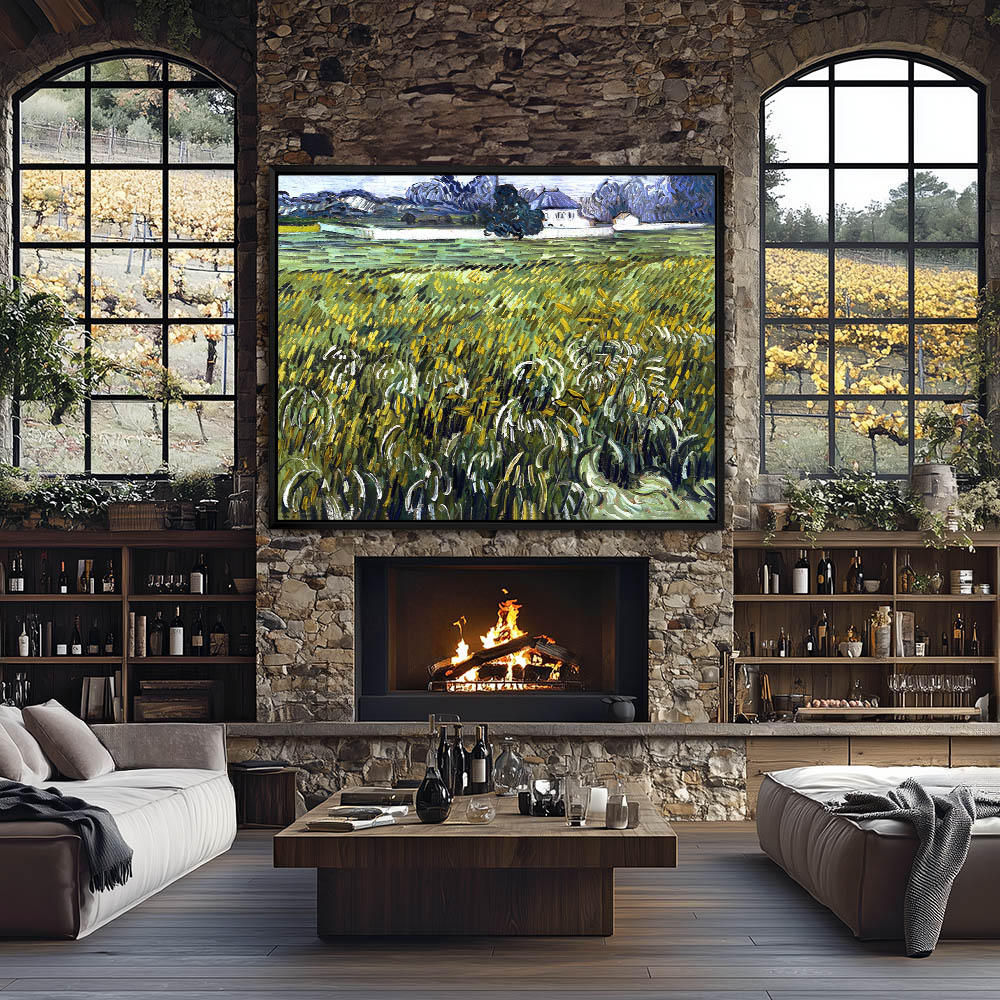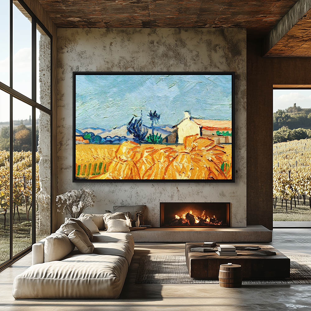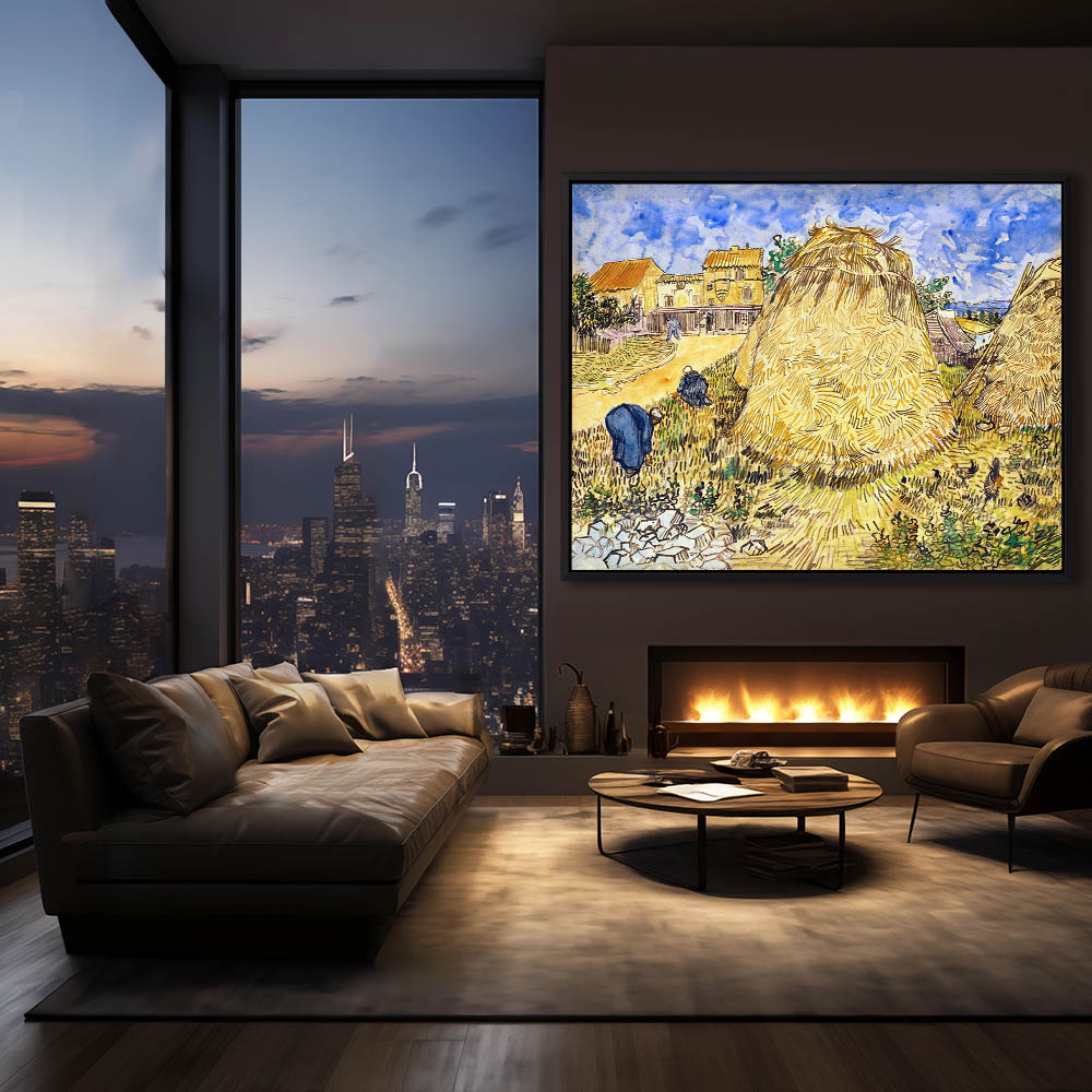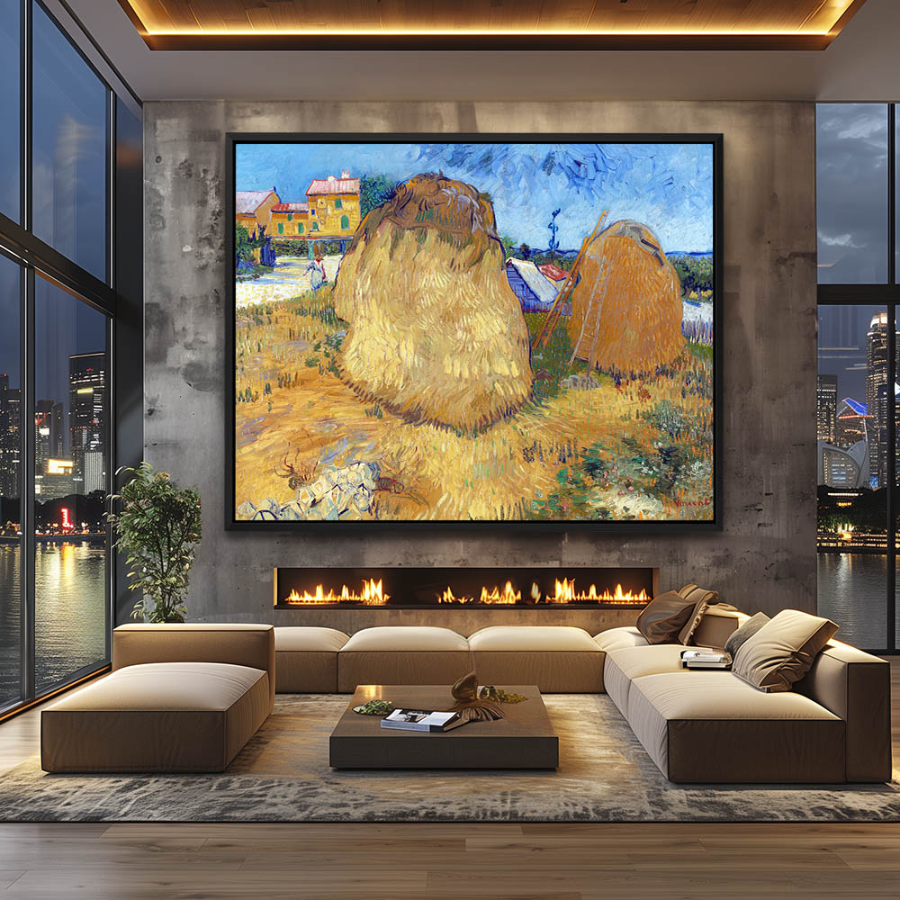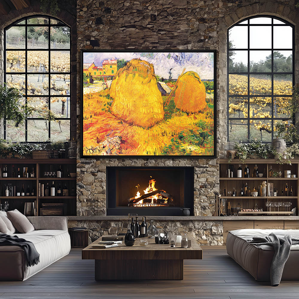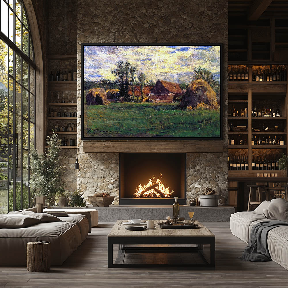 Vintage Landscape Painting of Haystacks in a Meadow Near Giverny