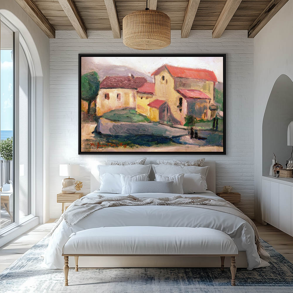 Impressionist Landscape Painting of a Farm with a Farmhouse