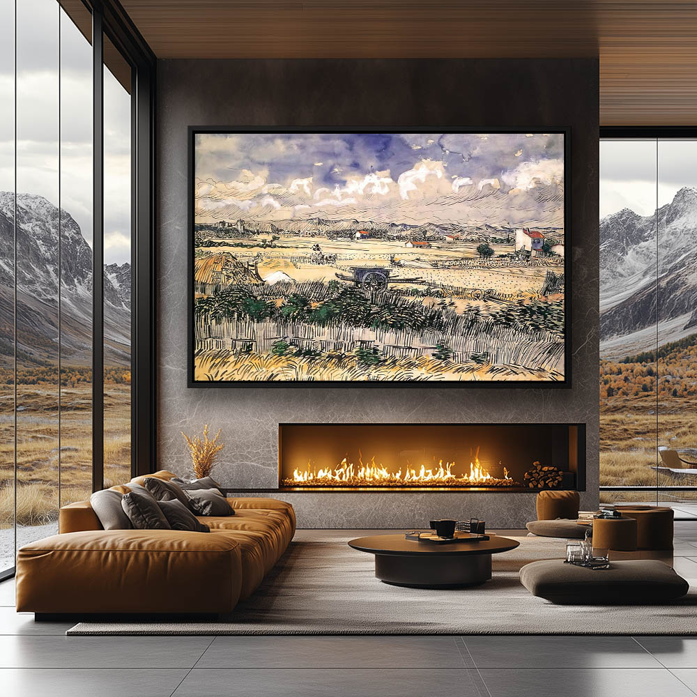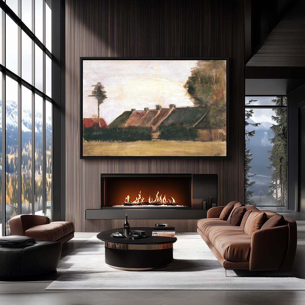Impressionist Abstract Landscape Painting with Farmland and Farmhouses