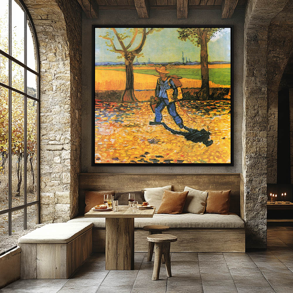 Impressionist Abstract Landscape Painting with the Artist Walking to Work