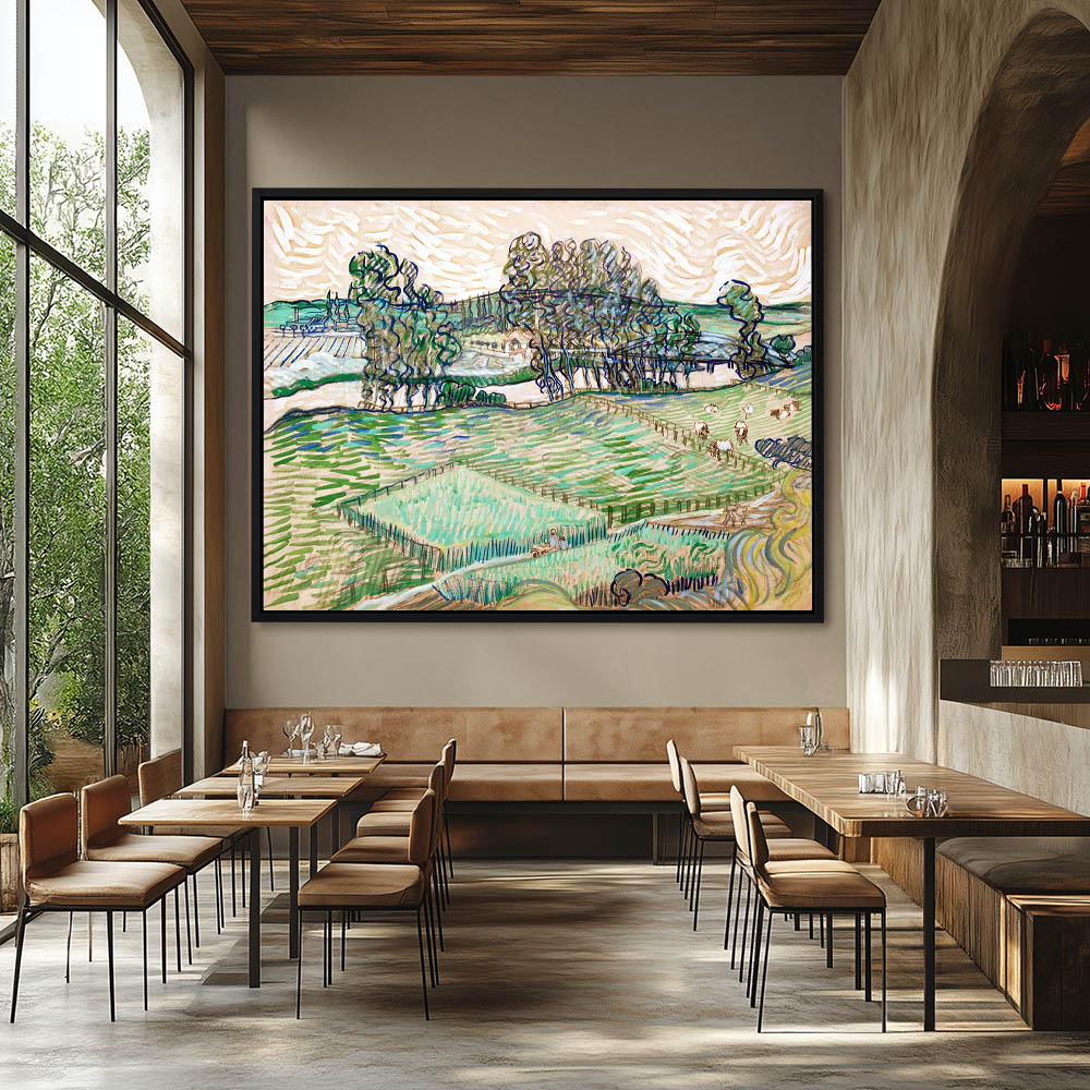 Impressionist Abstract Landscape Painting of Farmland with Cattle